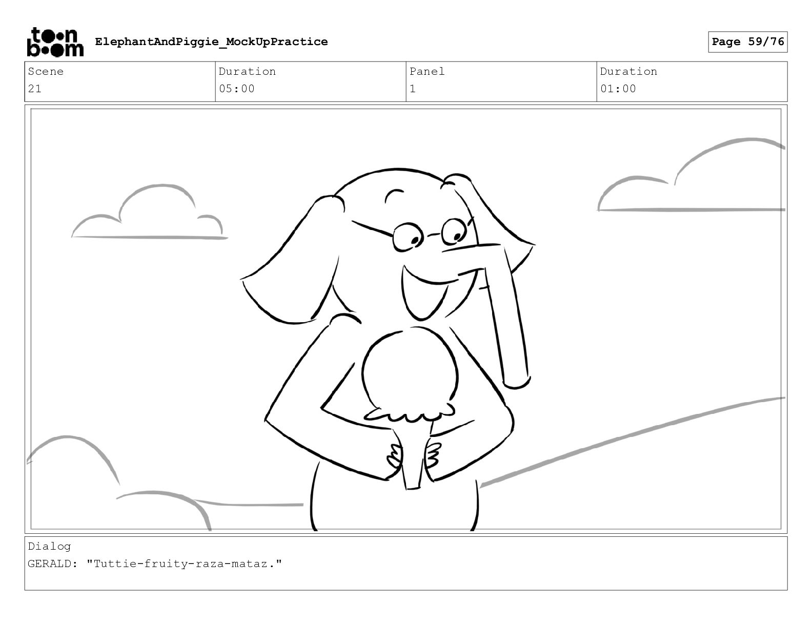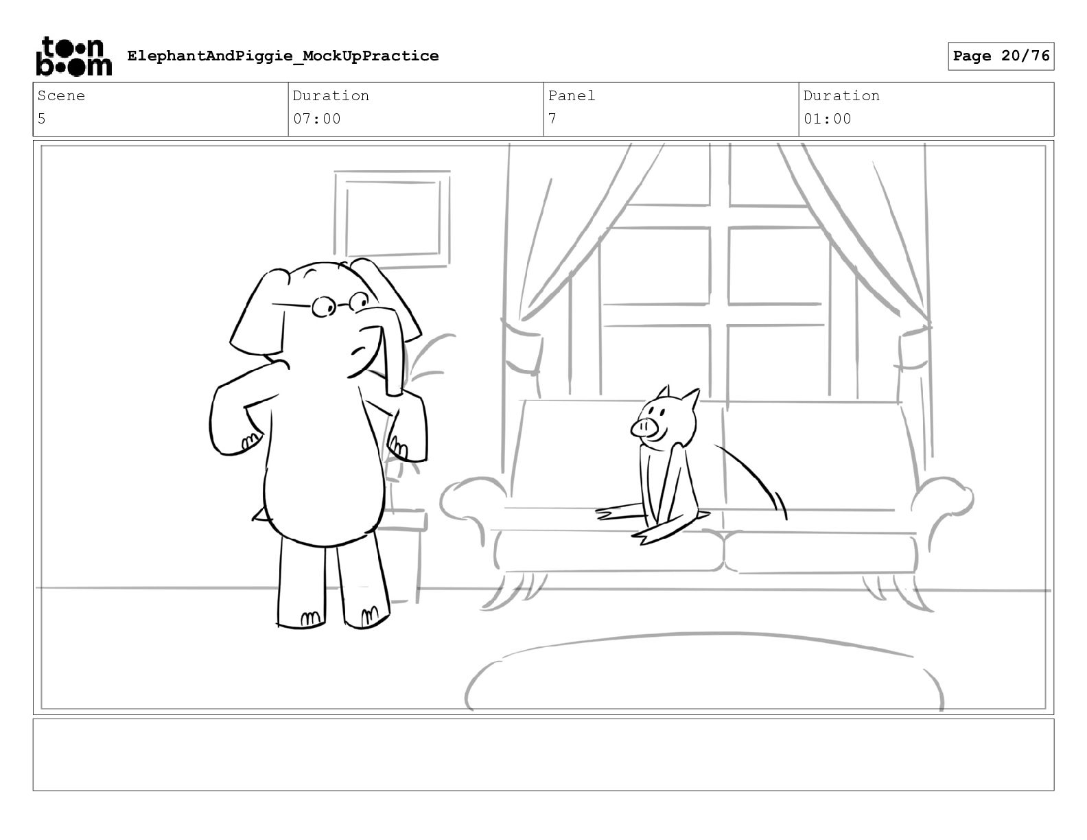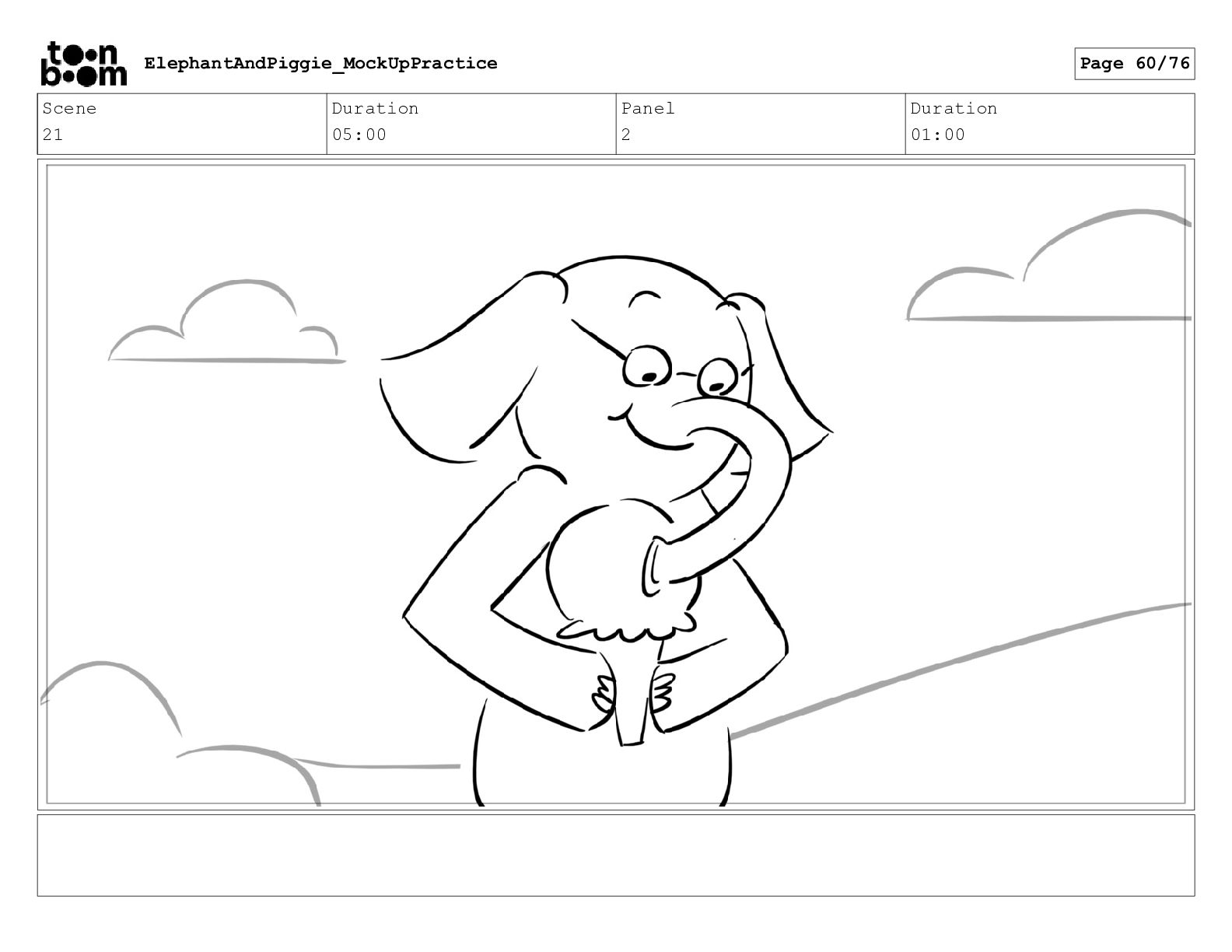 Scene 21 Duration 05:00 Panel 5 Duration 01:00 ElephantAndPiggie_MockUpPractice Page