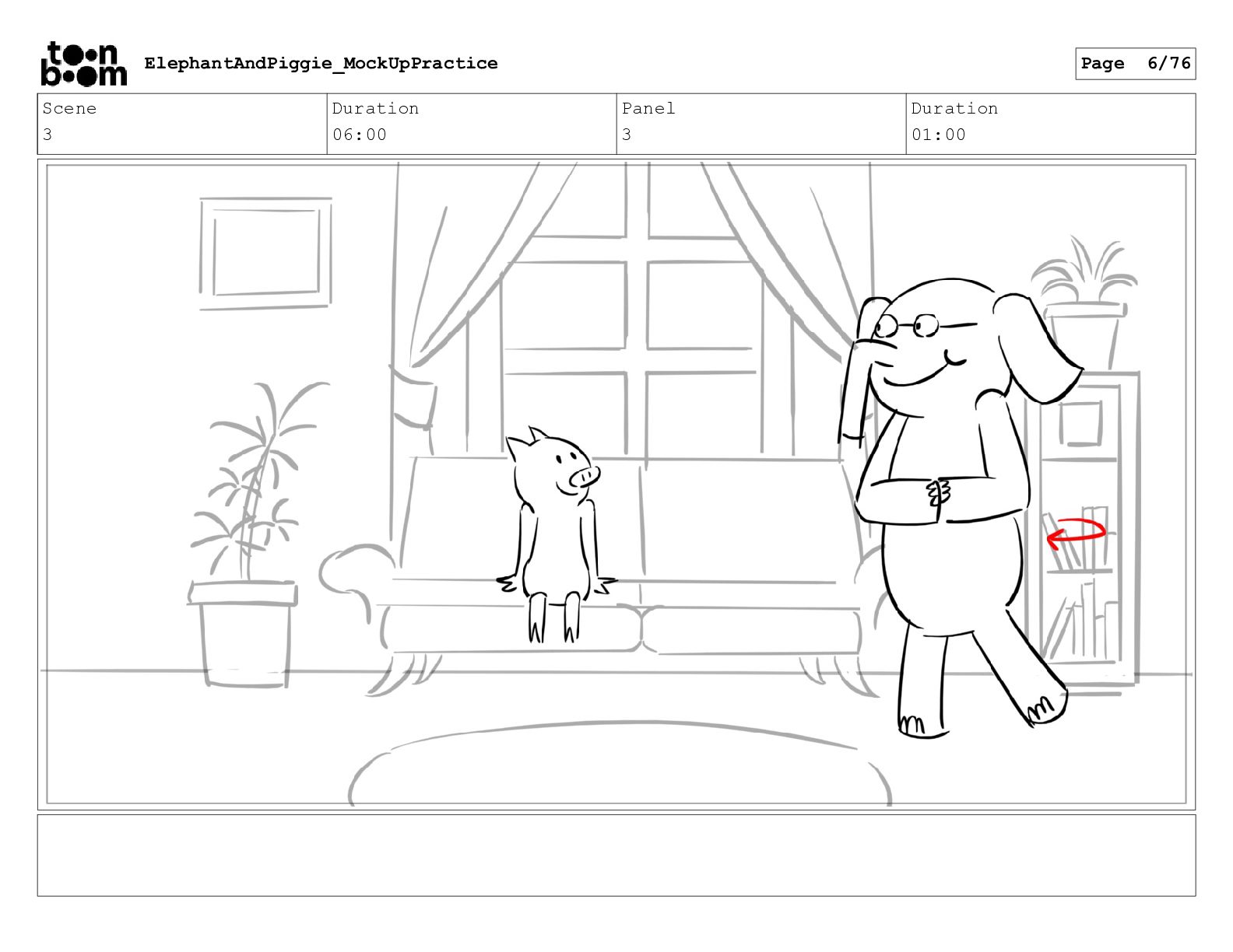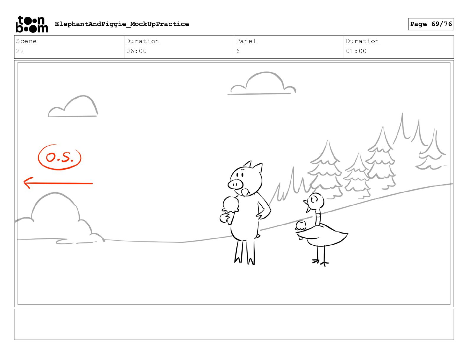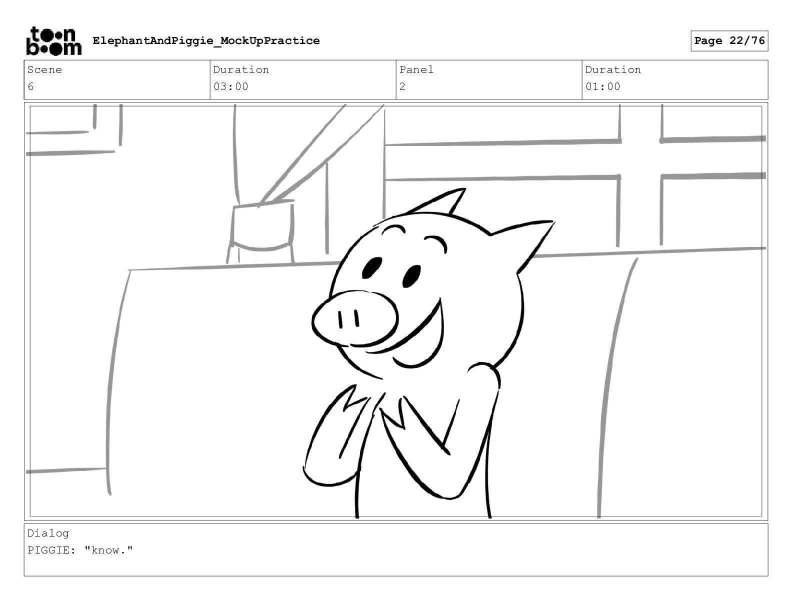 Scene 22 Duration 06:00 Panel 6 Duration 01:00 ElephantAndPiggie_MockUpPractice Page