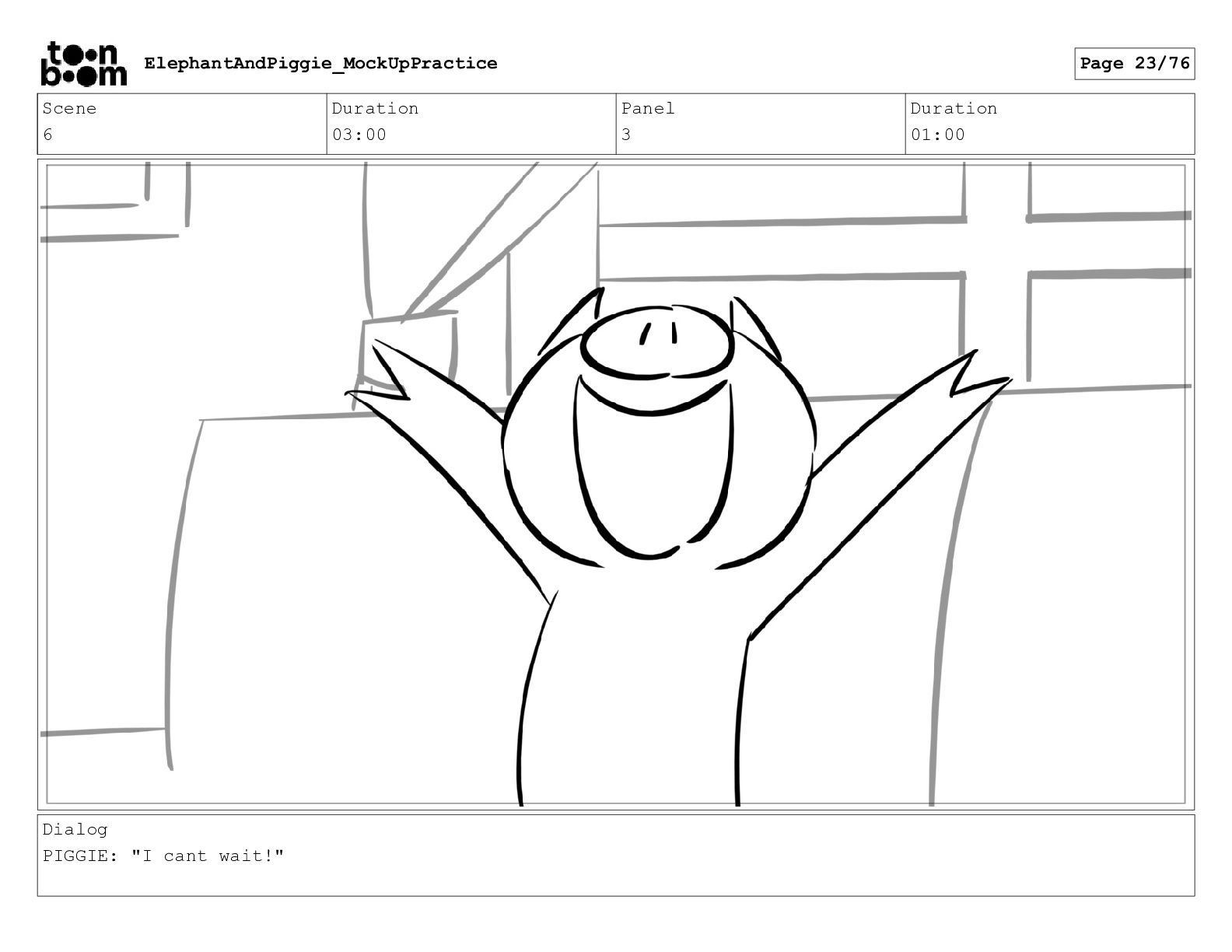 Scene 23 Duration 05:00 Panel 3 Duration 01:00 ElephantAndPiggie_MockUpPractice Page