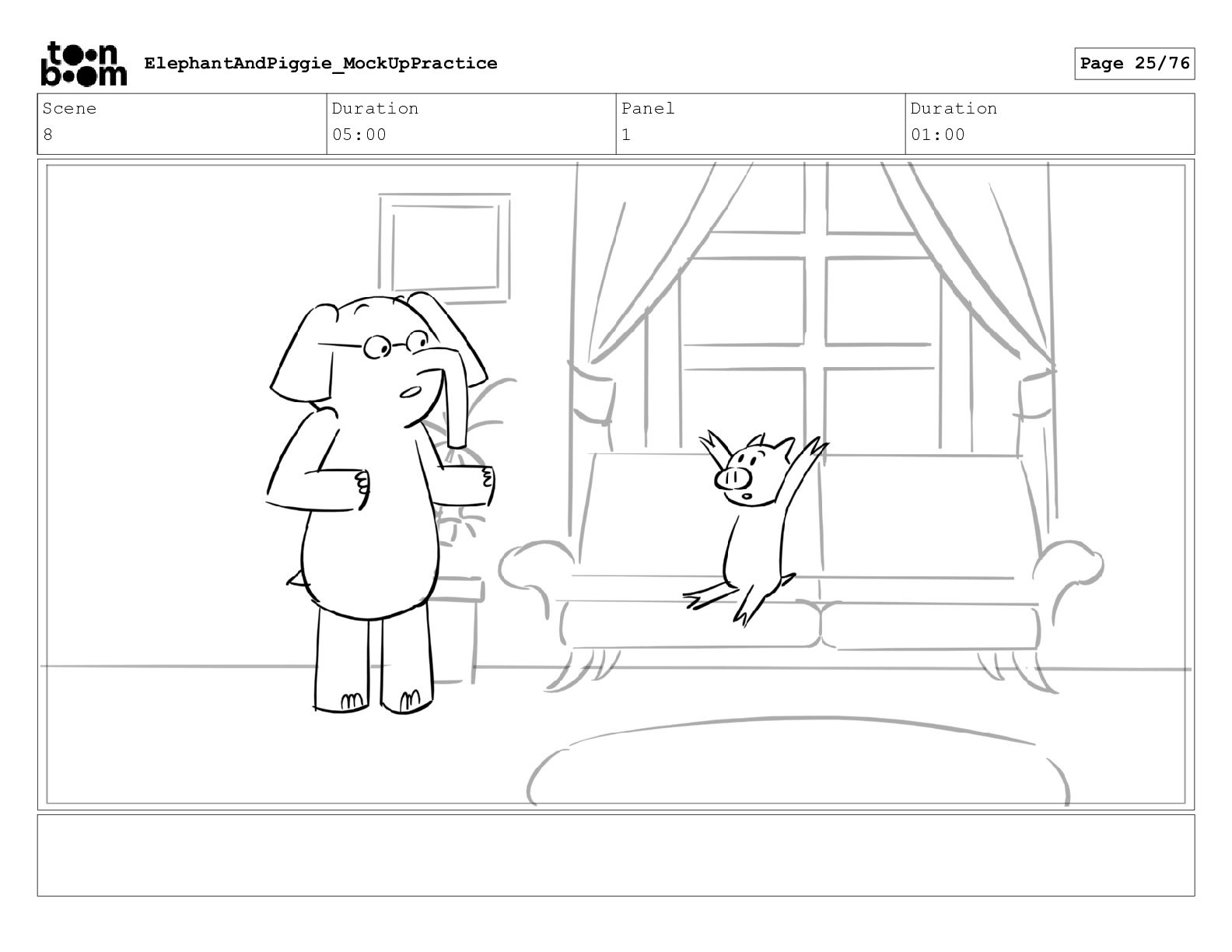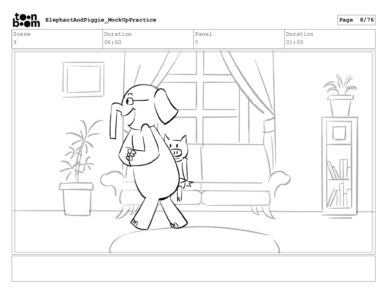 Scene 8 Duration 05:00 Panel 5 Duration 01:00 ElephantAndPiggie_MockUpPractice Page
