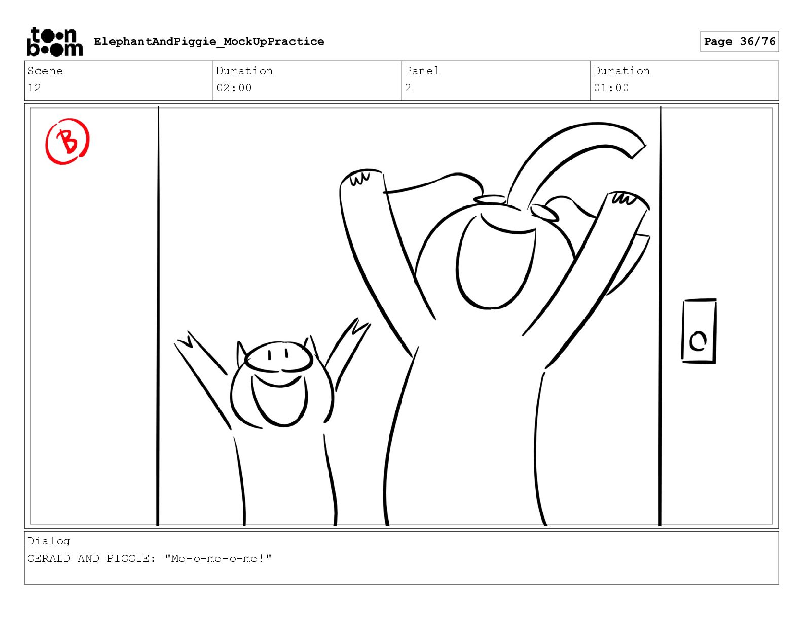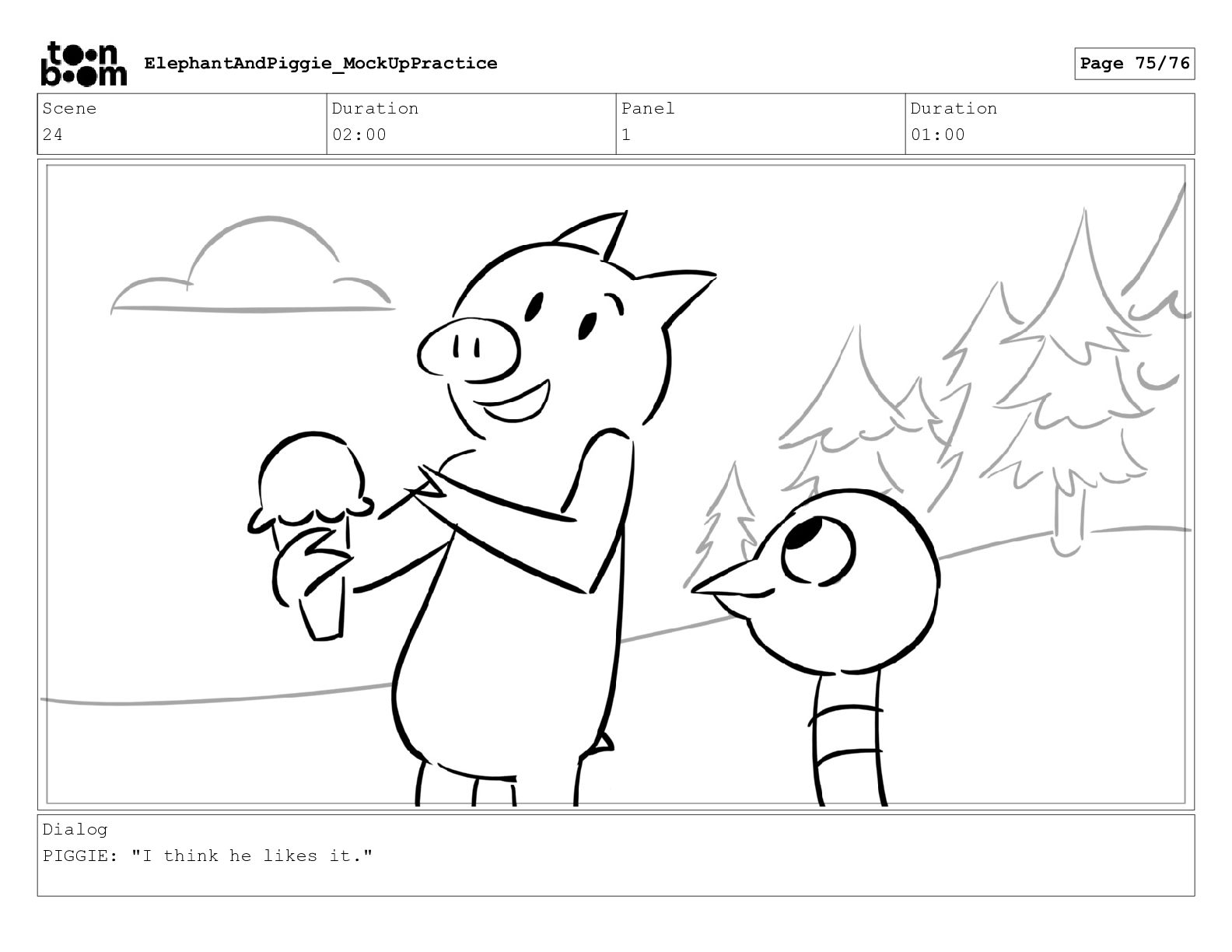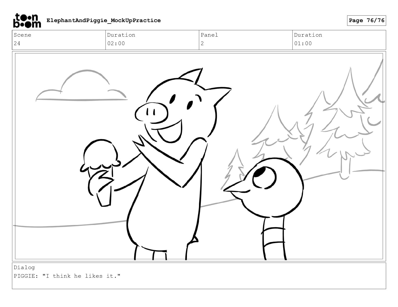 Scene 23 Duration 05:00 Panel 2 Duration 01:00 ElephantAndPiggie_MockUpPractice Page
