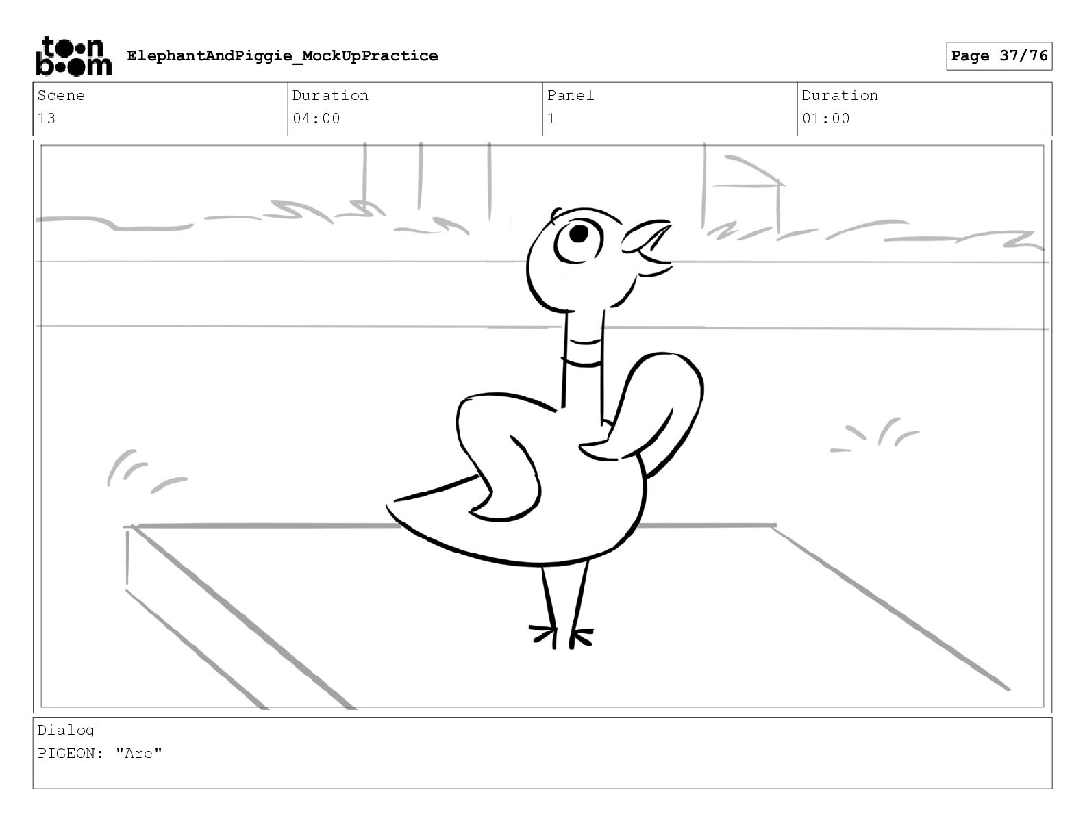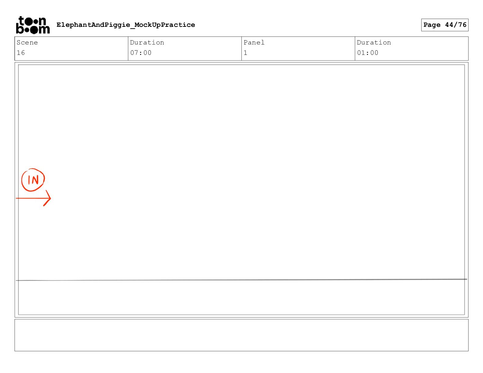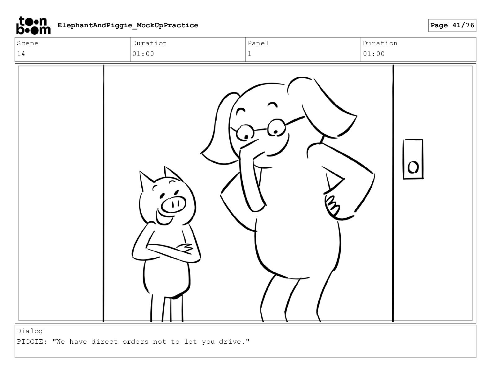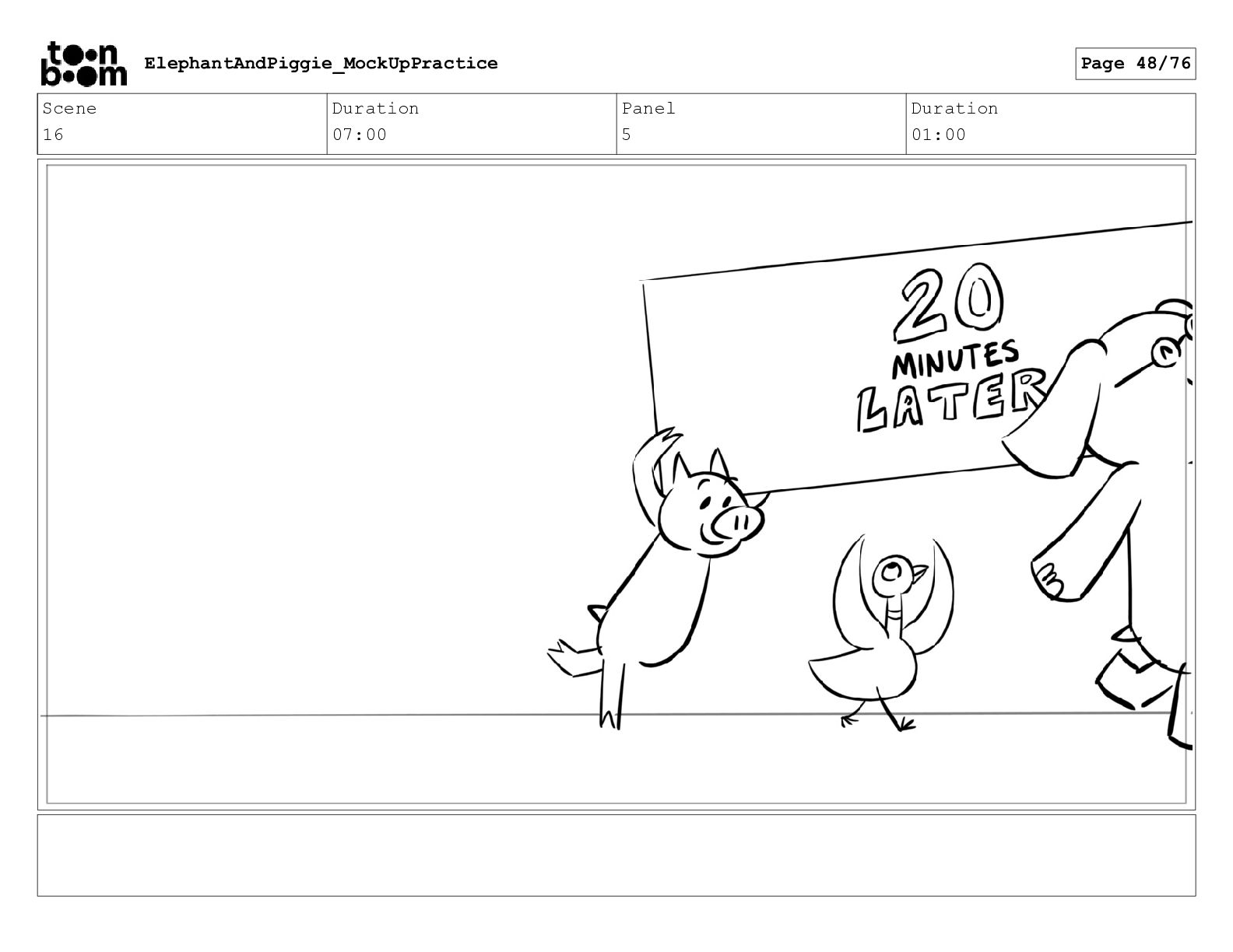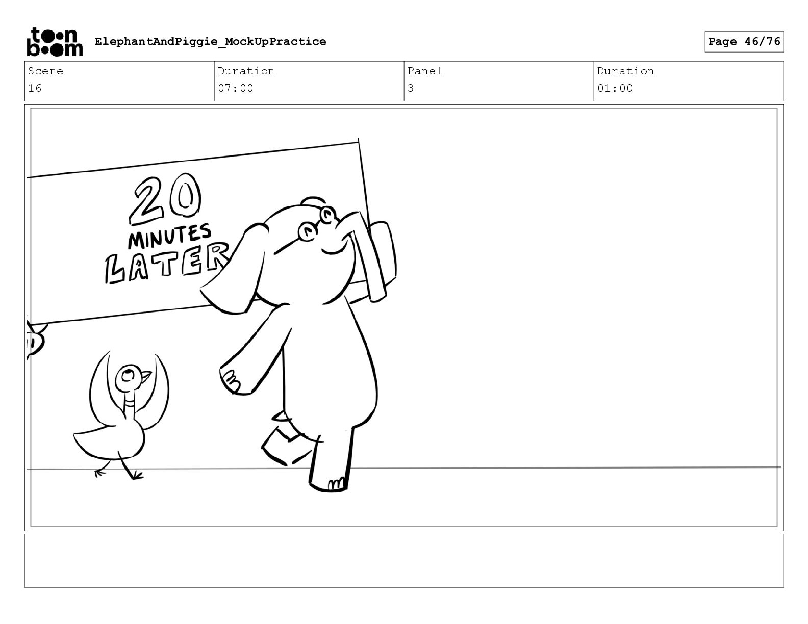 Scene 16 Duration 07:00 Panel 1 Duration 01:00 ElephantAndPiggie_MockUpPractice Page