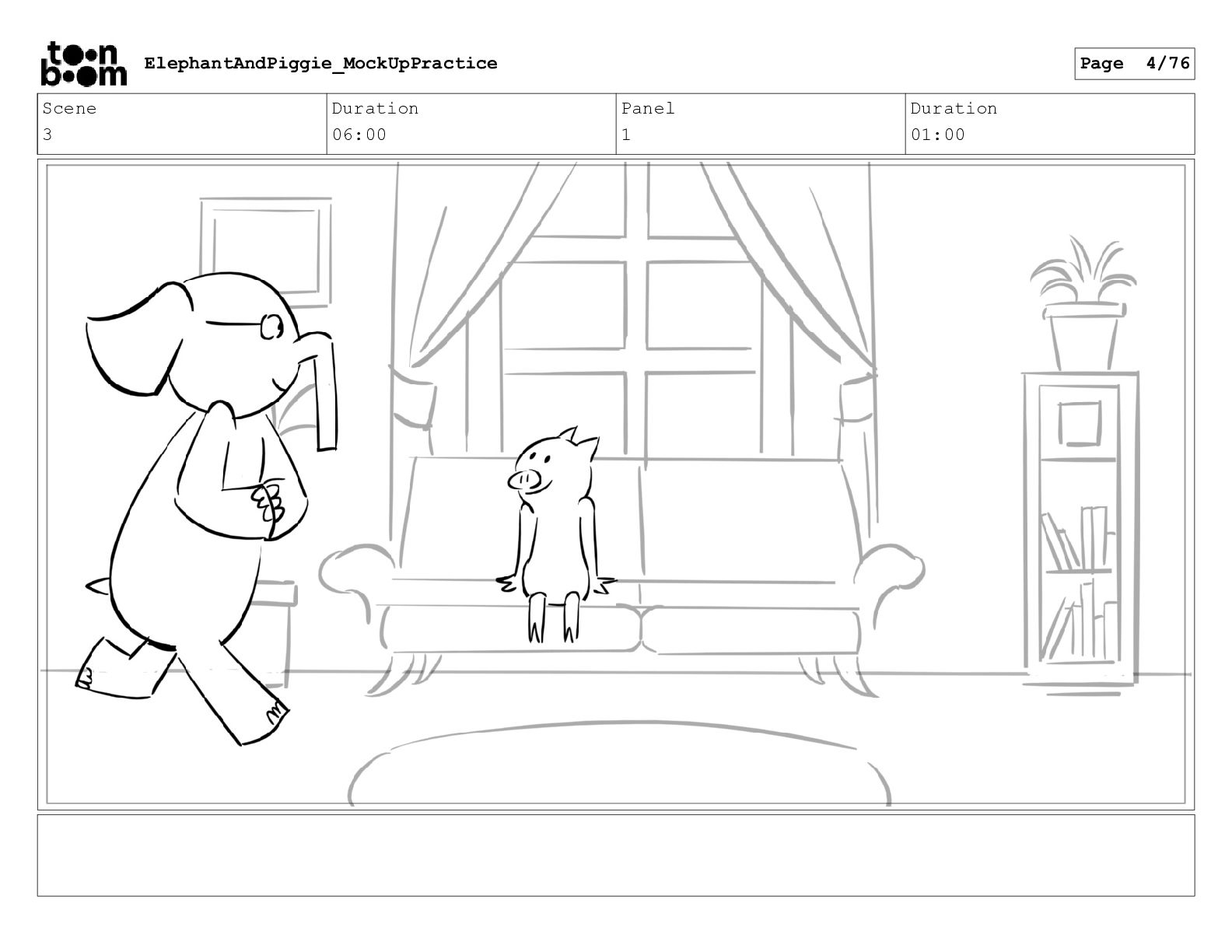 Scene 8 Duration 05:00 Panel 4 Duration 01:00 ElephantAndPiggie_MockUpPractice Page