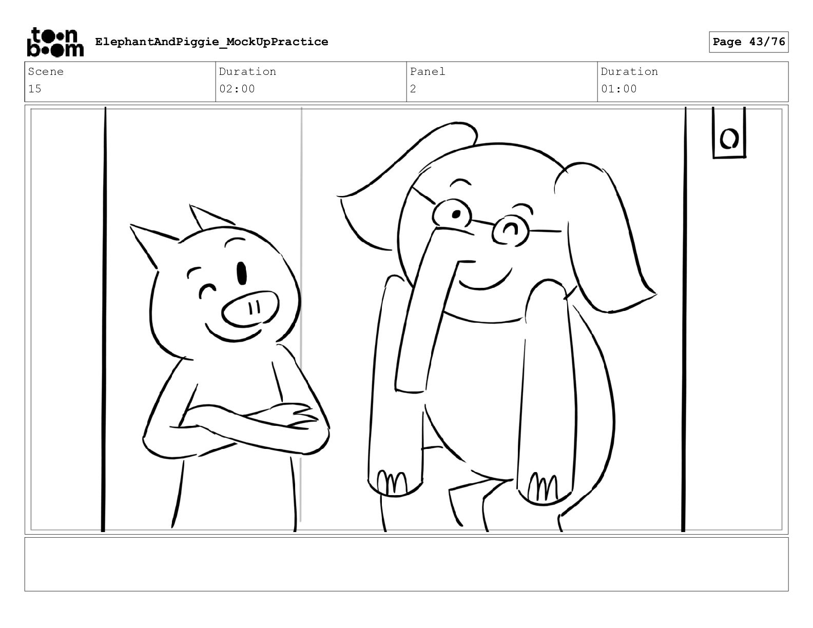 Scene 15 Duration 02:00 Panel 1 Duration 01:00 ElephantAndPiggie_MockUpPractice Page