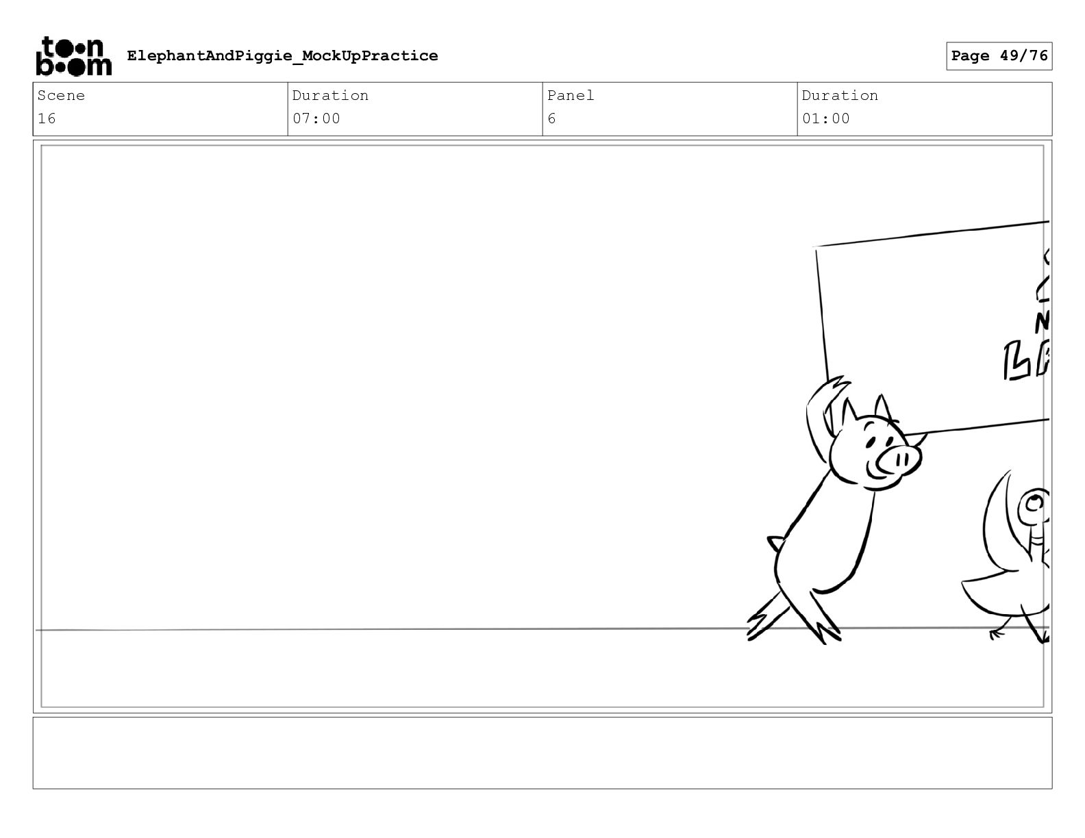 Scene 16 Duration 07:00 Panel 6 Duration 01:00 ElephantAndPiggie_MockUpPractice Page