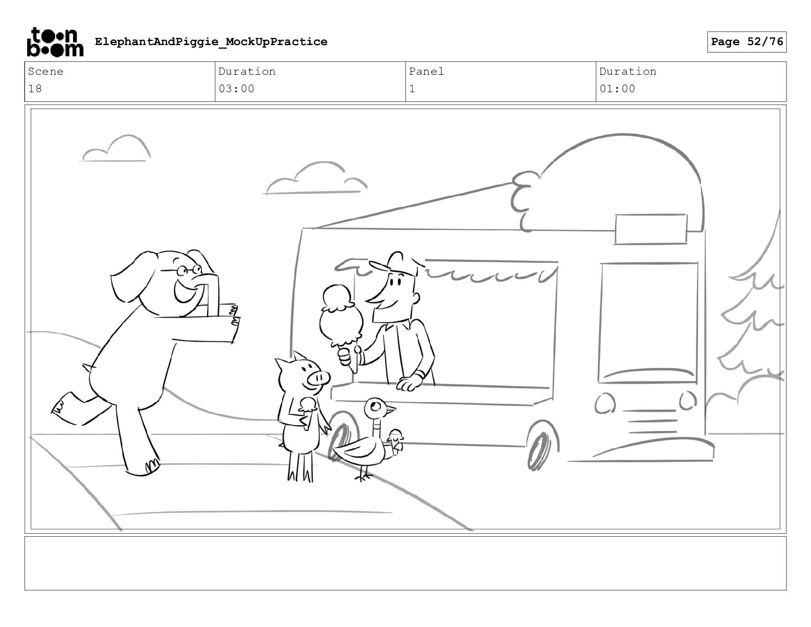 Scene 18 Duration 03:00 Panel 3 Duration 01:00 ElephantAndPiggie_MockUpPractice Page