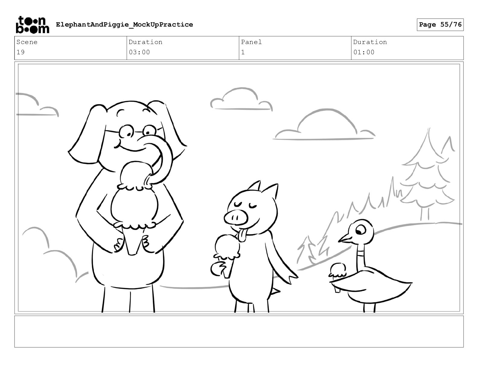 Scene 19 Duration 03:00 Panel 2 Duration 01:00 ElephantAndPiggie_MockUpPractice Page