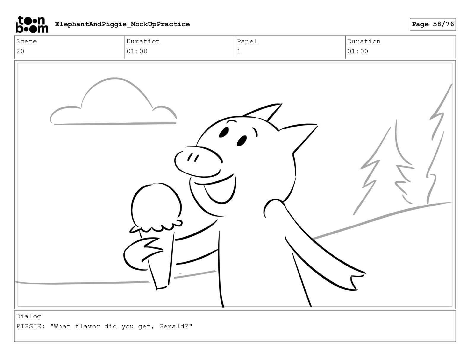 Scene 19 Duration 03:00 Panel 1 Duration 01:00 ElephantAndPiggie_MockUpPractice Page