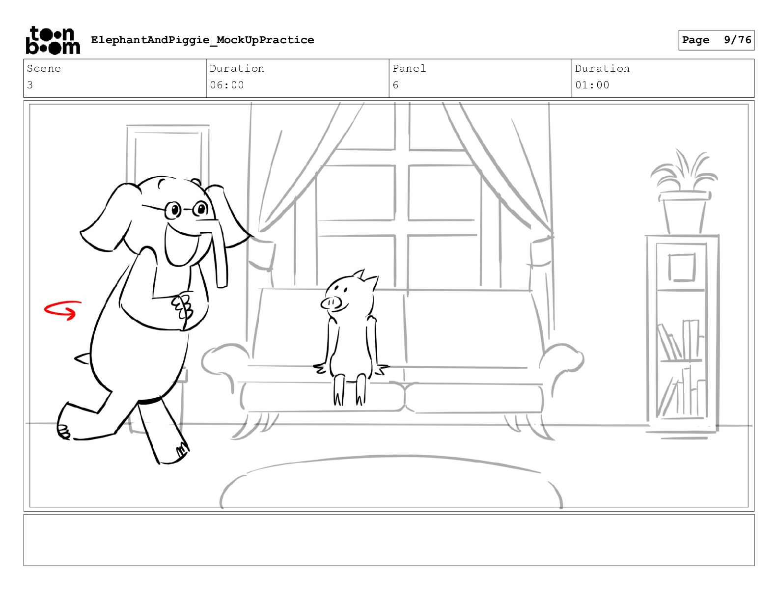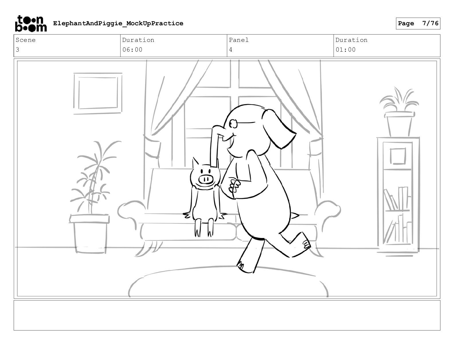 Scene 22 Duration 06:00 Panel 3 Duration 01:00 ElephantAndPiggie_MockUpPractice Page