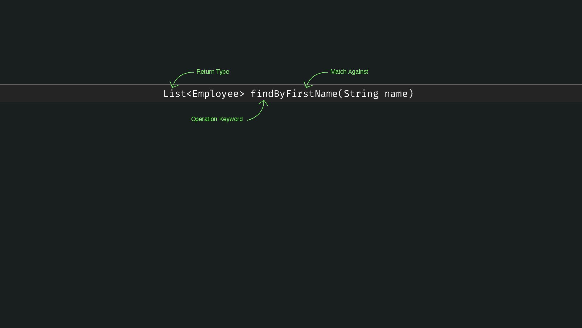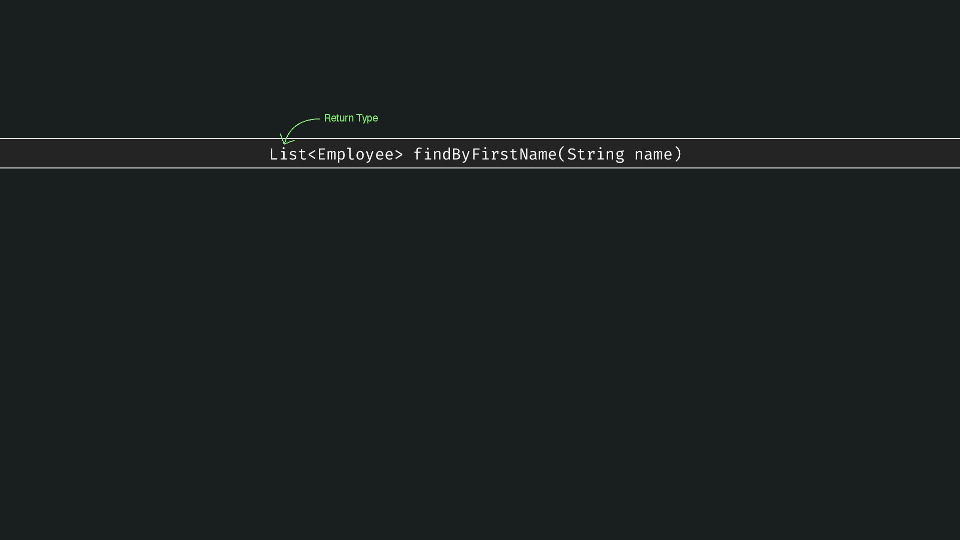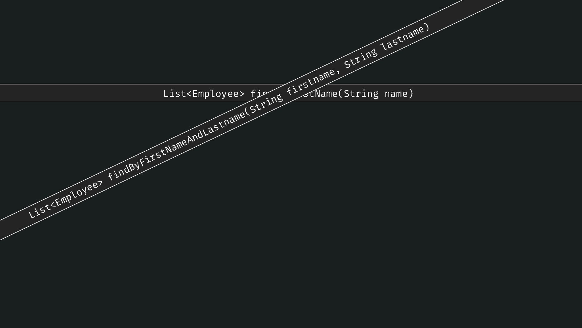 10. List<Employee> f i ndByFirstName(String name) List<Employee> f i ndByFirstNameAndLastname(String f