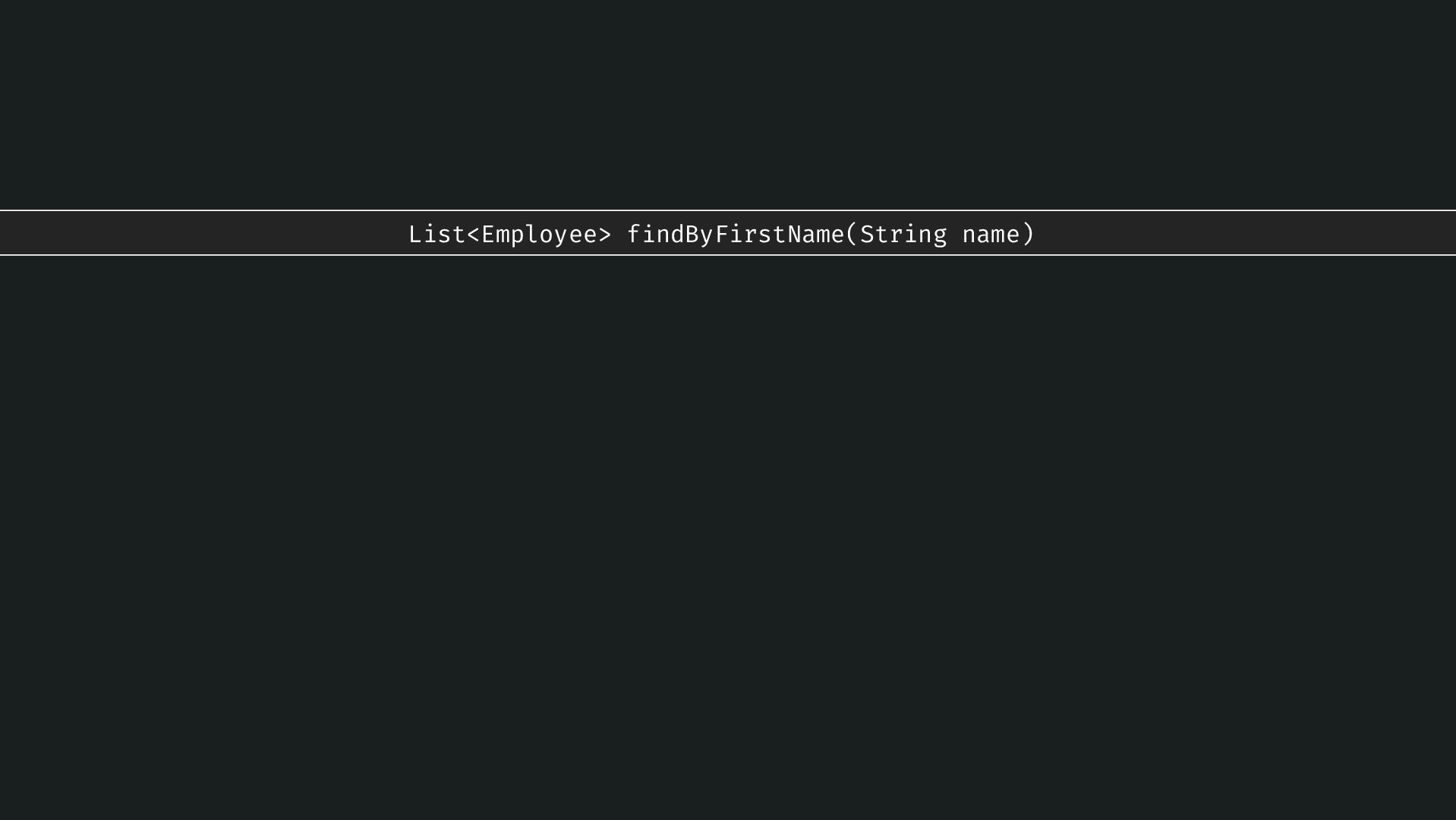 5. List<Employee> f i ndByFirstName(String name) List<Employee> f i ndByFirstNameAndLastname(String f