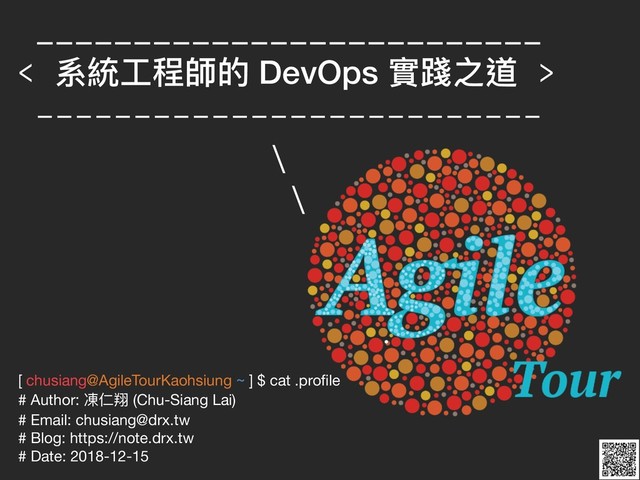 * Blog 文章:https://note.drx.tw/2018/12/devops-practice-of-system-engineer.html