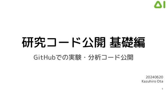 研究コード公開 基礎編 GitHubでの実験・分析コード公開 20240620 Kazuhiro Ota 1