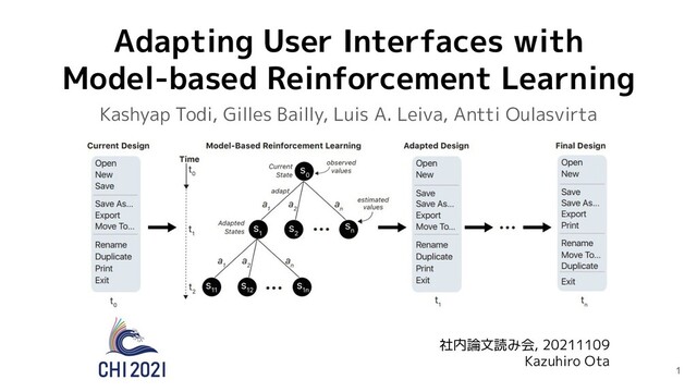 社内の論文読み会で紹介したCHI2021採択論文Adapting User Interfaces with Model-based Reinforcement Learningの紹介スライドです