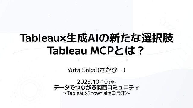 ワークブックやデータソース を検索したり、ワークブック の情報(メタデータ、画像)を 取得できる。 Tableau Pulseに関する機 能。メトリックの一覧を取っ てきてその状況を教えてくれ る。 List Datasources Get Datasource Metadata Query Datasource List Workbooks Get Workbook List Views Get View Image Get View Data List All Metric Defenitions List Metric Defenitions List Metrics for Defenition List Metrics List Metric Subscriptions Generate insight Bundle 概 要 ツ | ル 群