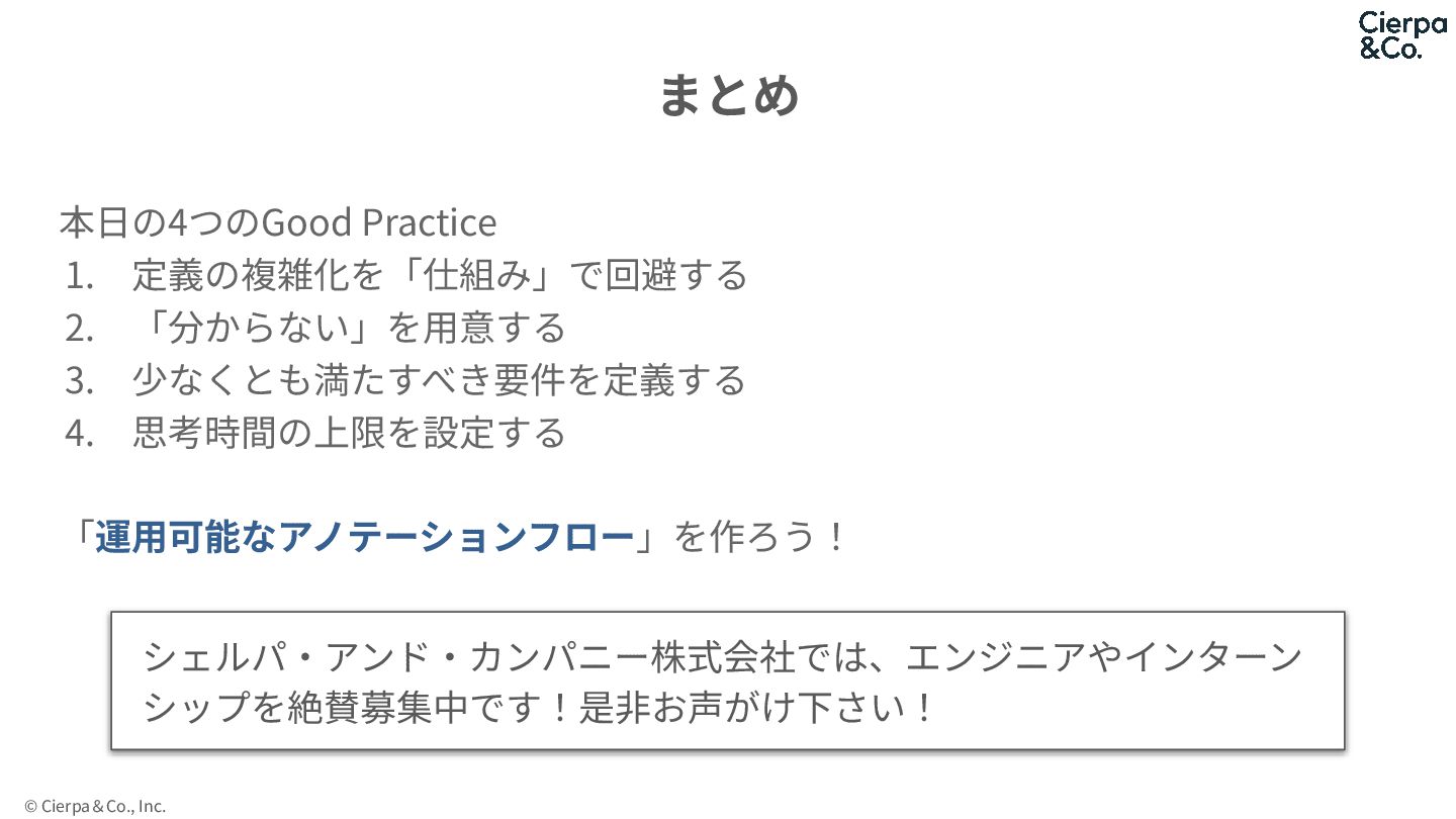 © Cierpa&Co., Inc. 本⽇の4つのGood Practice 1. 定義の複雑化を「仕組み」で回避する 2. 「分からない」を⽤意する 3.