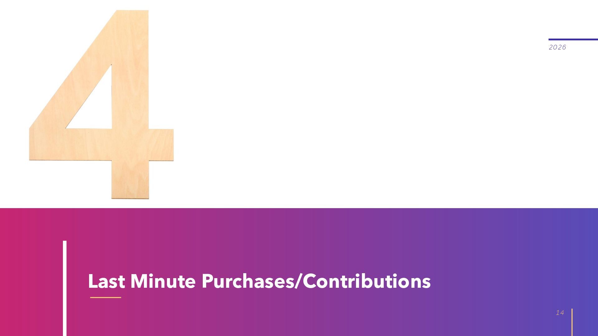 . . • 401k Contributions • Large purchases (100% bonus depreciation for most tangible property wi th a recovery period of 20 years or less) • Roth IRA/Catch-up • Set up beneficiaries on accounts • Donations to supported organizations Other things that you may want to do (if you haven’t already) . . . • Exit strategy • Tax, payroll, purchase, investment, operations accts • Estate documents • Strategic plan • Open accounts (general operating, taxes, reinvestment, payroll/support, investment) 15 2026