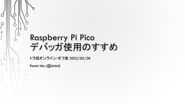 Raspberry Pi Pico デバッガ使用のすすめ トラ技オンライン・オフ会 2022/05/28 Kenta Ida (@ciniml)