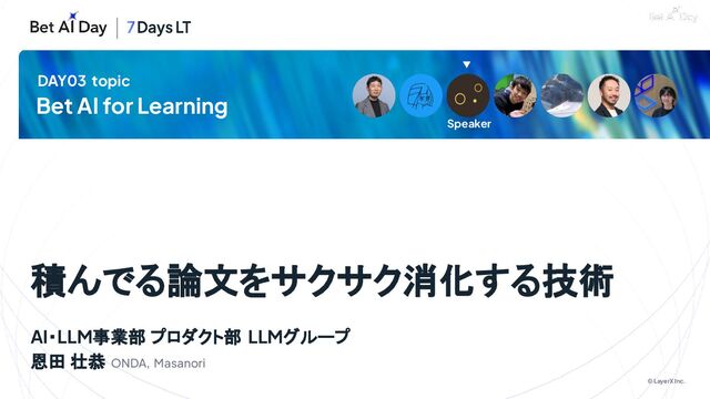 © LayerX Inc. 積んでる論文をサクサク消化する技術 AI・LLM事業部 プロダクト部 LLMグループ 恩田 壮恭 ONDA,