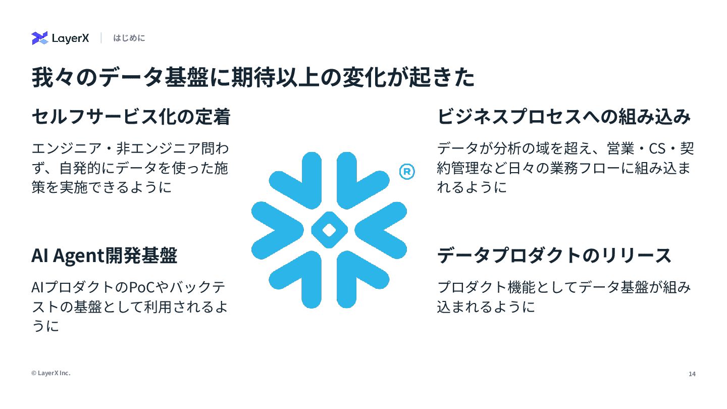 Snowflake導入から1年、LayerXのデータ活用の現在 / One Year into Snowflake: How LayerX Uses Data Today