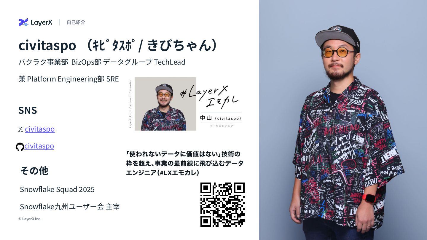 1. © LayerX Inc. 3 バクラク事業部 BizOps部 データグループ TechLead 兼 Platform