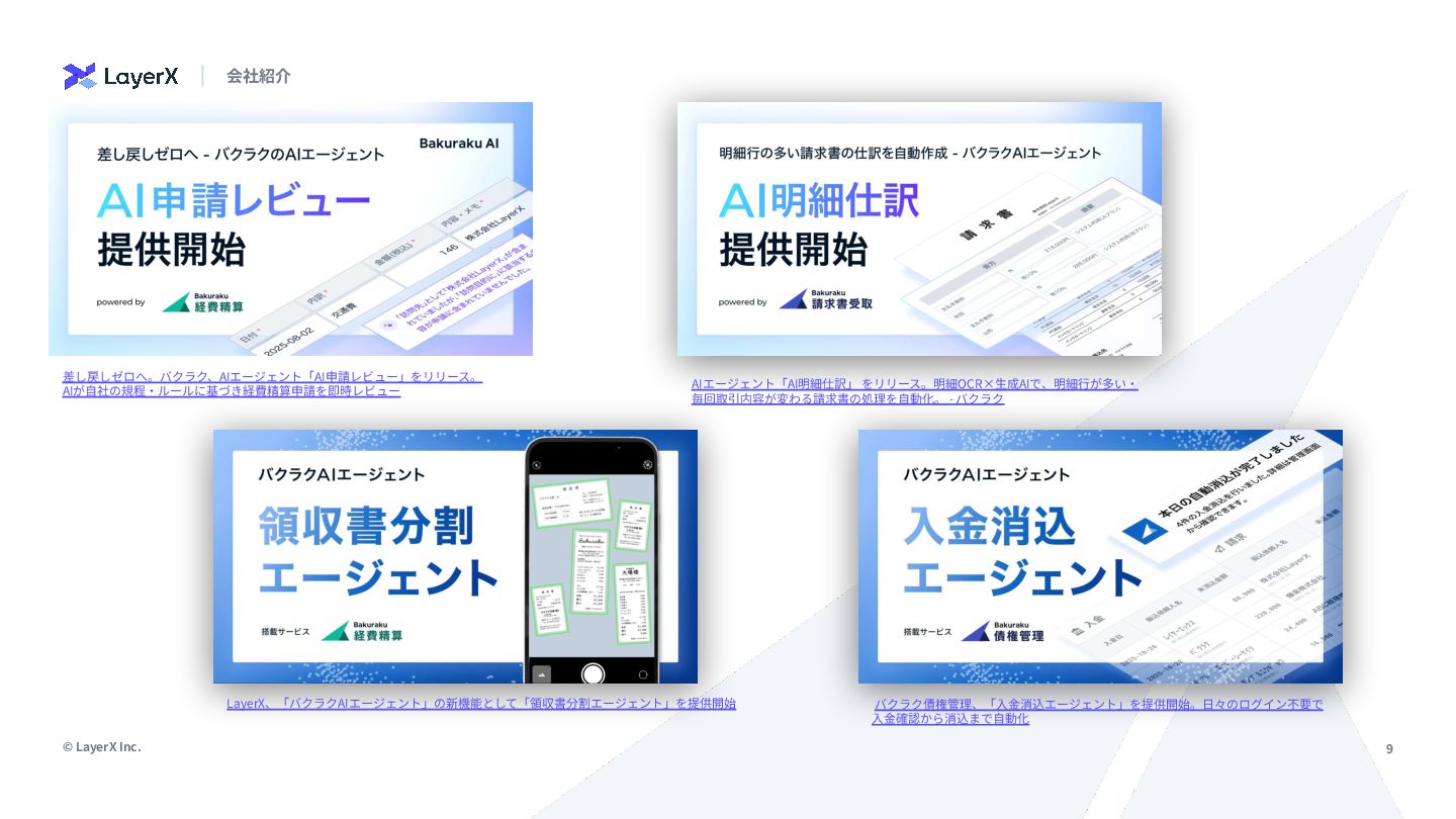 4. © LayerX Inc. 14 AI Agent開発基盤 AIプロダクトのPoCやバックテ ストの基盤として利⽤されるよ うに 我々のデータ基盤に期待以上の変化が起きた