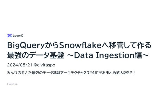 • そのため、要求を満たすための選択肢が増えた。自分たちで実装しなくともエコシステムによって解決 できるケースが増えた。 要求を満たすための選択肢が増えた Snowflakeへの移管によって我々のデータ基盤がどのような能力を持つようになったか ※ たとえば、Salesforce Data CloudとのZero ETL機能はSnowflakeとBigQueryで対応時期が半年以上開いている ref. Salesforce and Snowflake Make Data Sharing-Based Integration Generally Available, Helping Customers with Data-Driven Engagement ref. Combine data across BigQuery and Salesforce Data Cloud securely with zero ETL