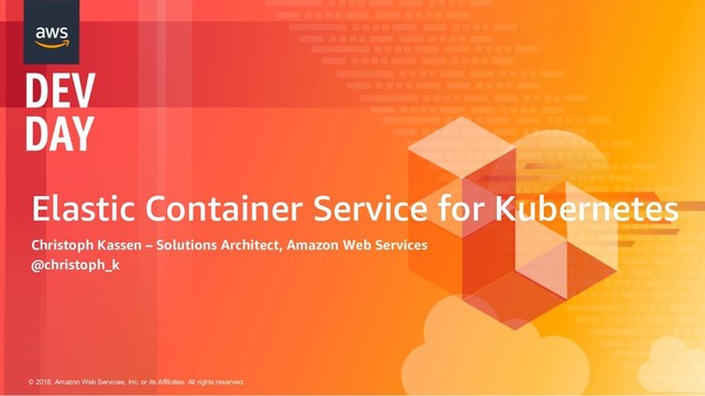 rights reserved. Open Source Kubernetes Community Kubernetes https://github.com/kubernetes/kubernetes CNI plugin https://github.com/aws/amazon-vpc-cni-k8s Heptio AWS Authenticator https://github.com/heptio/authenticator Virtual Kubelet https://github.com/virtual-kubelet/virtual-kubelet/ SIG AWS https://github.com/kubernetes/community/tree/master/sig-aws Cloud Provider Working Group https://github.com/kubernetes/community/tree/master/wg-cloud-provider External-DNS https://github.com/kubernetes-incubator/external-dns AWS ALB Ingress Controller https://github.com/kubernetes-sigs/aws-alb-ingress-controller CODE REVIEWS FIXING BUGS IMPLEMENTING NEW FEATURES