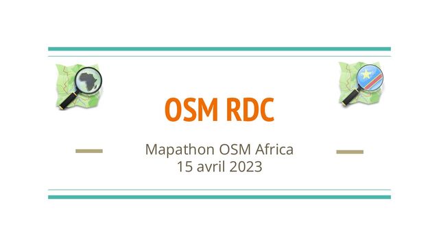 Présentation réalisée par OSM RDC à l'occasion du mapathon mensuel de la communauté OSM Africa tenu en ligne le 15 avril 2023.