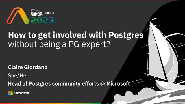 Slides from a talk about ways to get involved with the PostgreSQL open source database even if you're not a PG expert—presented at the PASS Data Community Summit in Seattle in Nov 2023. Abstract: Over 700 developers have contributed over 54,000 commits to Postgres: their expertise, dedication, and skill are big factors in the increasing popularity of Postgres. But what if you’re not a Postgres developer yet, are there things you can do to help the Postgres community? Are there ways to get involved in the PG community without being a Postgres expert?