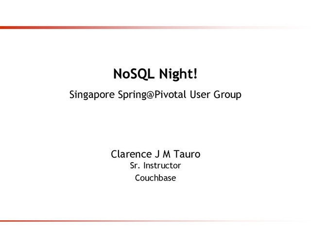 on Couchbase: http://training.couchbase.com CD220: Developing Couchbase NoSQL Applications Oct 20 – Oct 23 2015 CS300: Couchbase NoSQL Server Administration Nov 17 – Nov 20 Enroll Today!