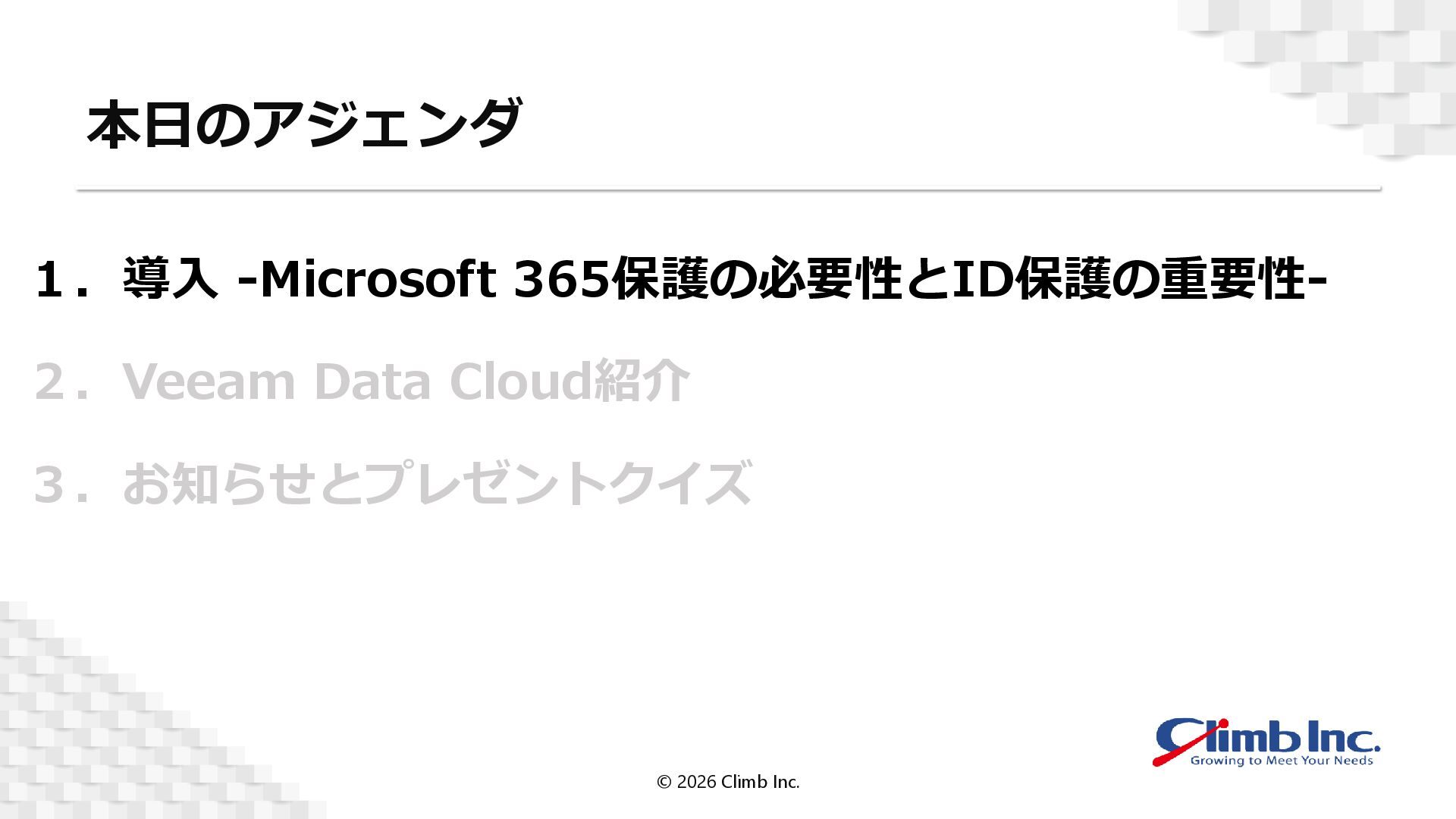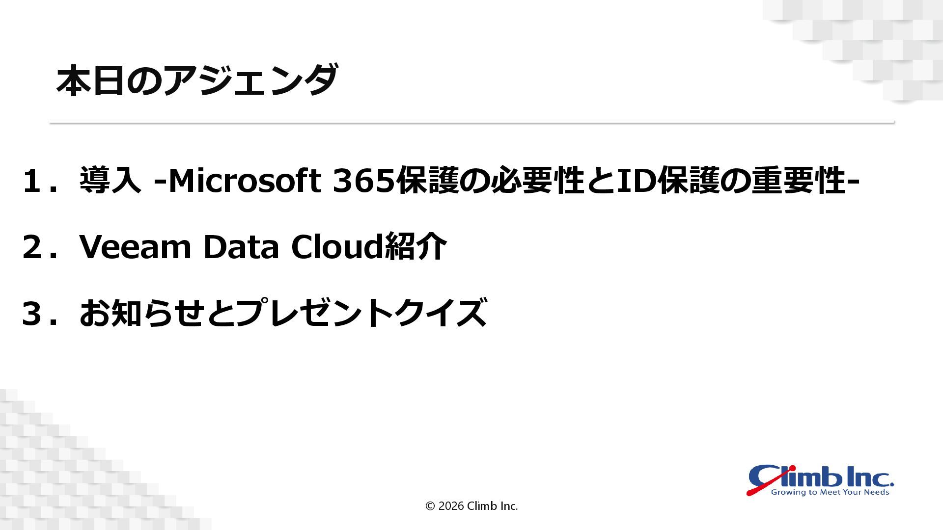 1. M365とEntra IDバックアップの考慮事項 © 2026 Climb Inc. © 2026 Climb Inc.