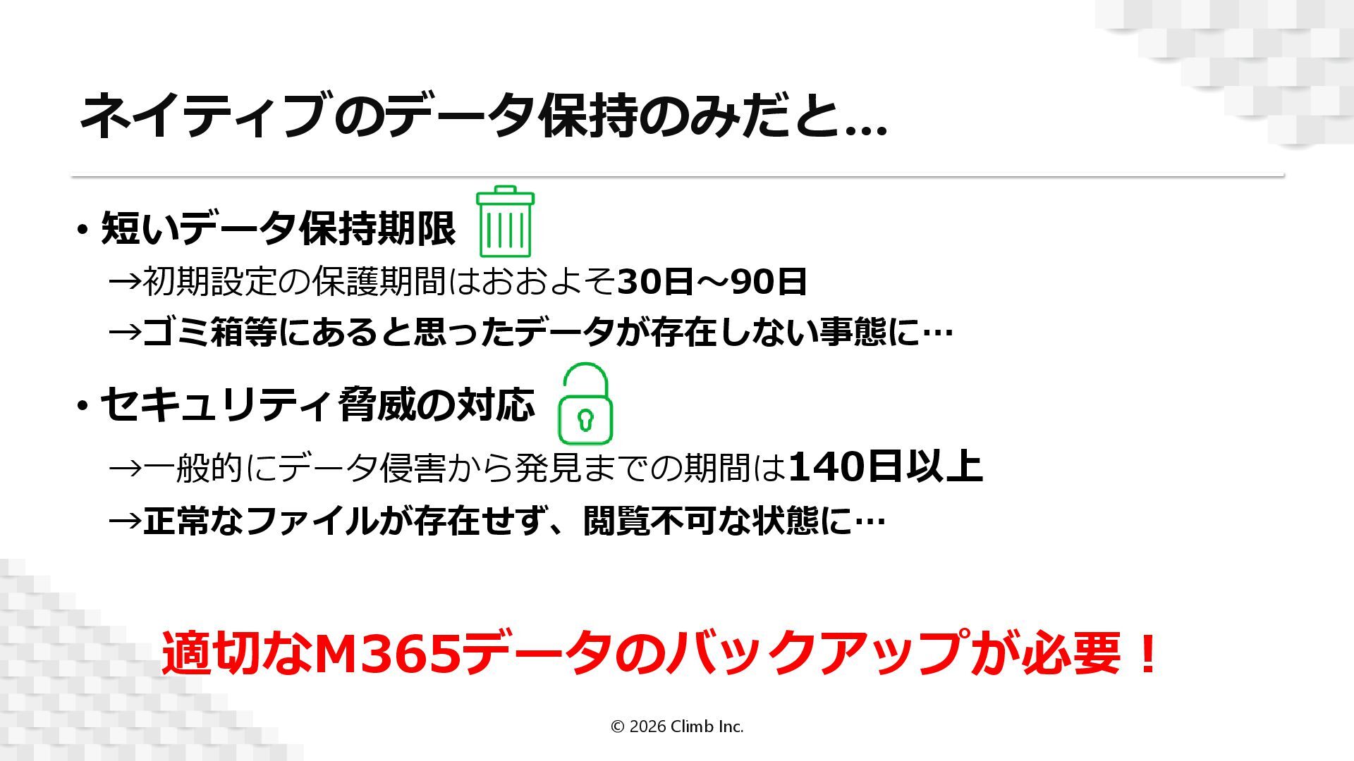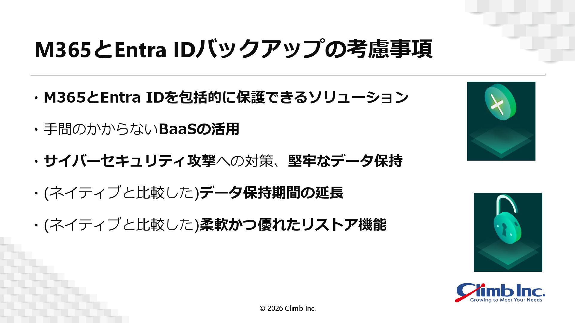 2. M365とEntra IDバックアップの考慮事項 © 2026 Climb Inc. © 2026 Climb Inc.
