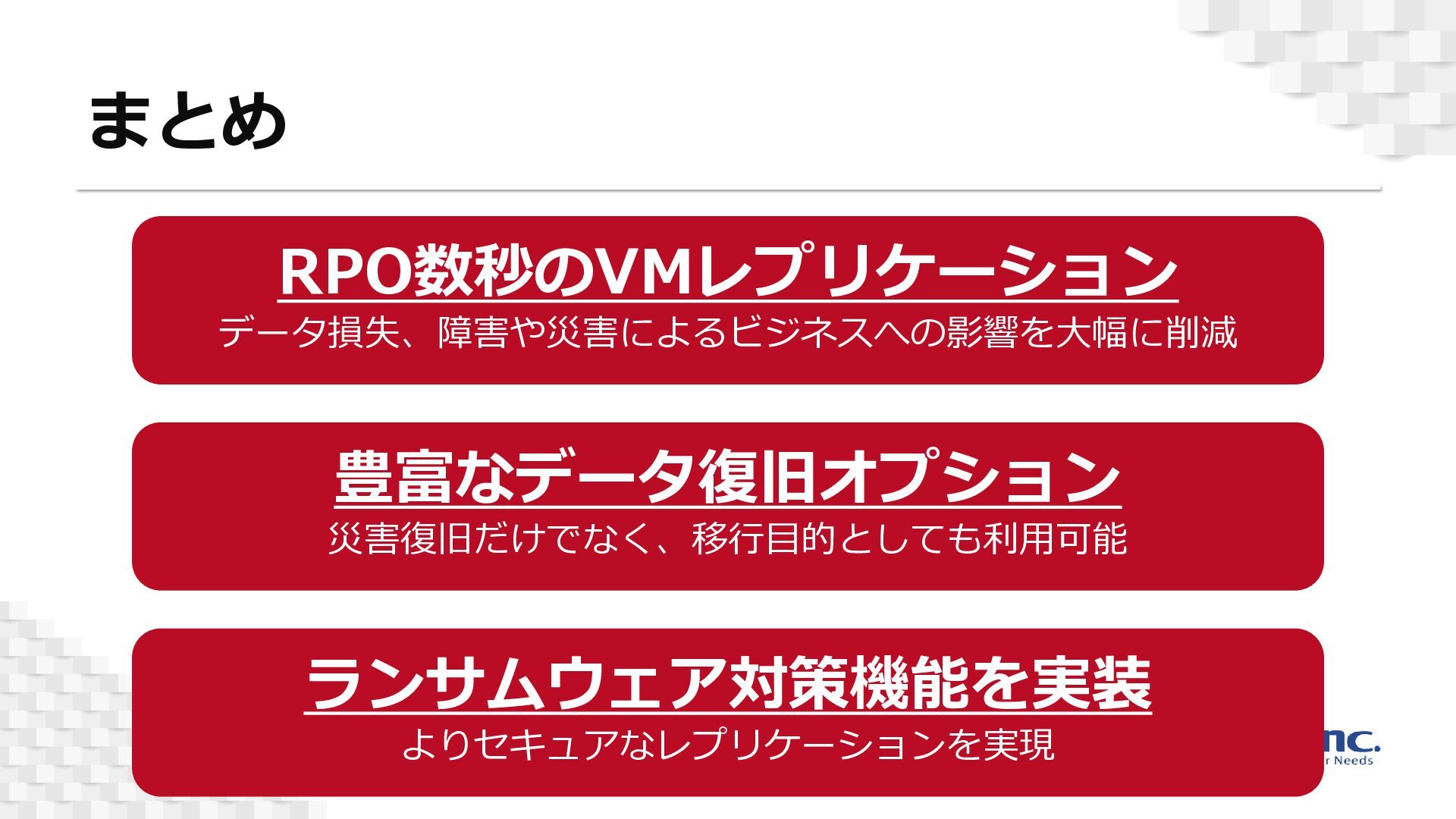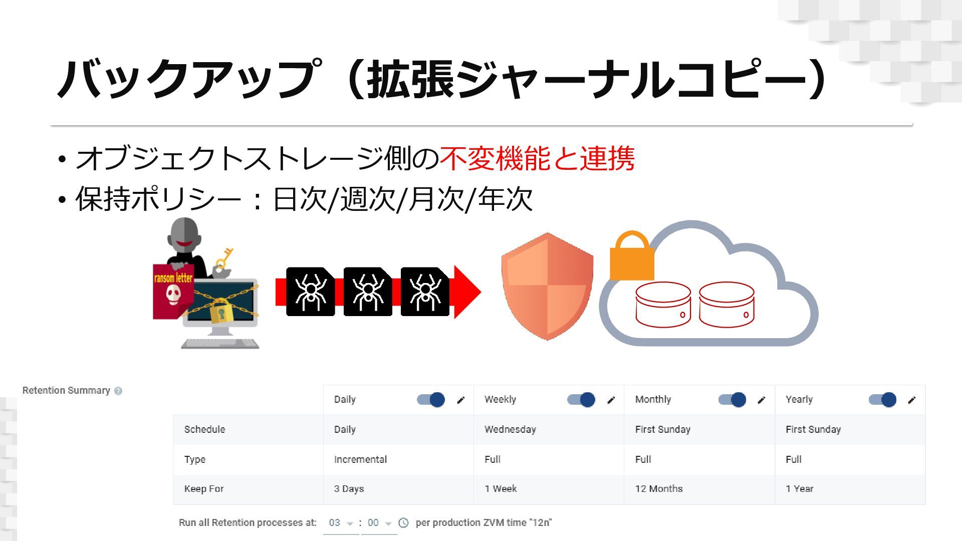 ランサムウェア対策を意識したセキュアなレプリケーションが可能となります。