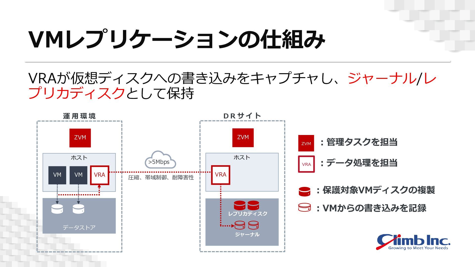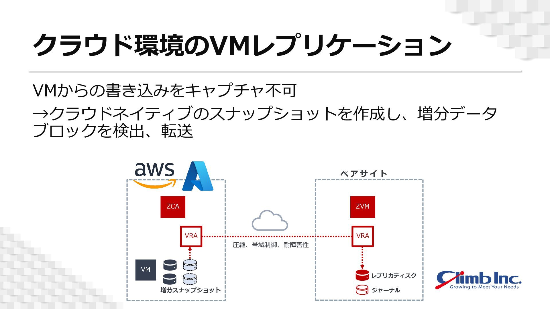 仮想ディスクへの書き込みをキャプチャ、ジャーナルとして転送することで、