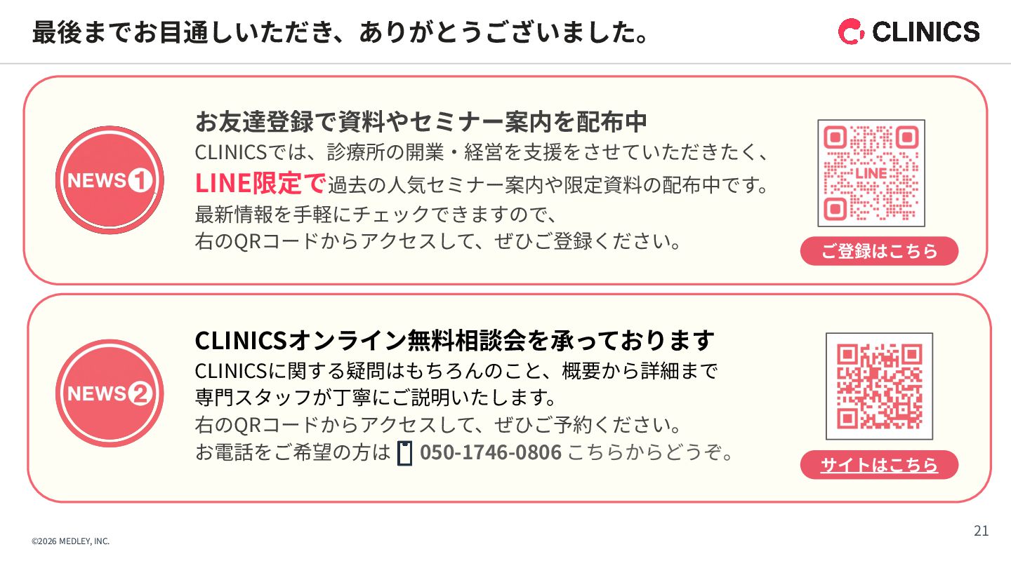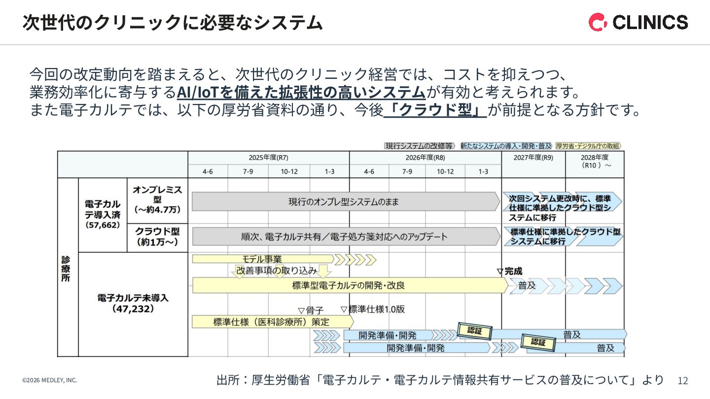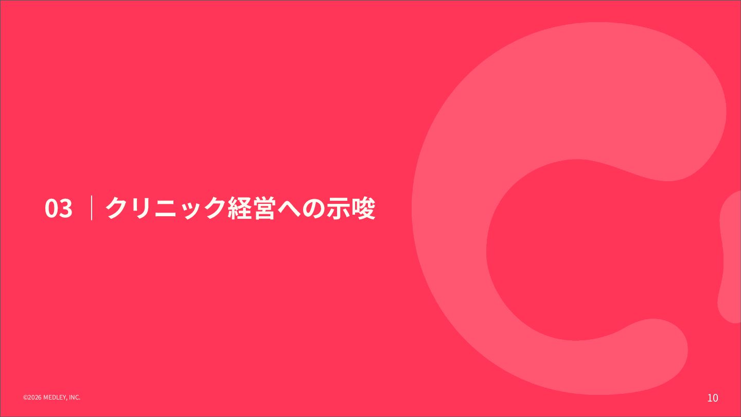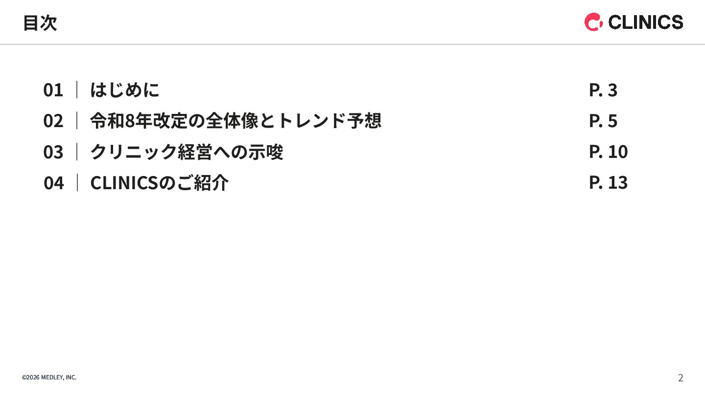 が新設。令和9年6月以降は点数が倍増される段階的な引き上げ措置を実施。 【解釈】 診療報酬本体の引き上げに加え、別枠で「物価対応」を行う異例の措置であり、 多くのクリニックに対して、経営コスト増への直接的な補填を意図したものである。 【背景】 全産業的な賃上げの流れの中で、医療人材を確保するための処遇改善が急務となっている。 【内容】 「外来・在宅ベースアップ評価料(I)・(II)」等について、継続的に賃上げを実施している医療機関を 高く評価する区分が新設された。 【解釈】 賃上げは「推奨」から「経営上の義務」へとフェーズが変化したといえる。 1. 「物価対応料」の新設(緊急措置) 2. 「ベースアップ評価料」の⾒直し その中でも、新設された「物価対応料」、および、⾒直しがされた「ベースアップ評価料」は、 クリニック経営が、物価⾼‧⼈件費増を乗り越えるために重要な算定項⽬となります