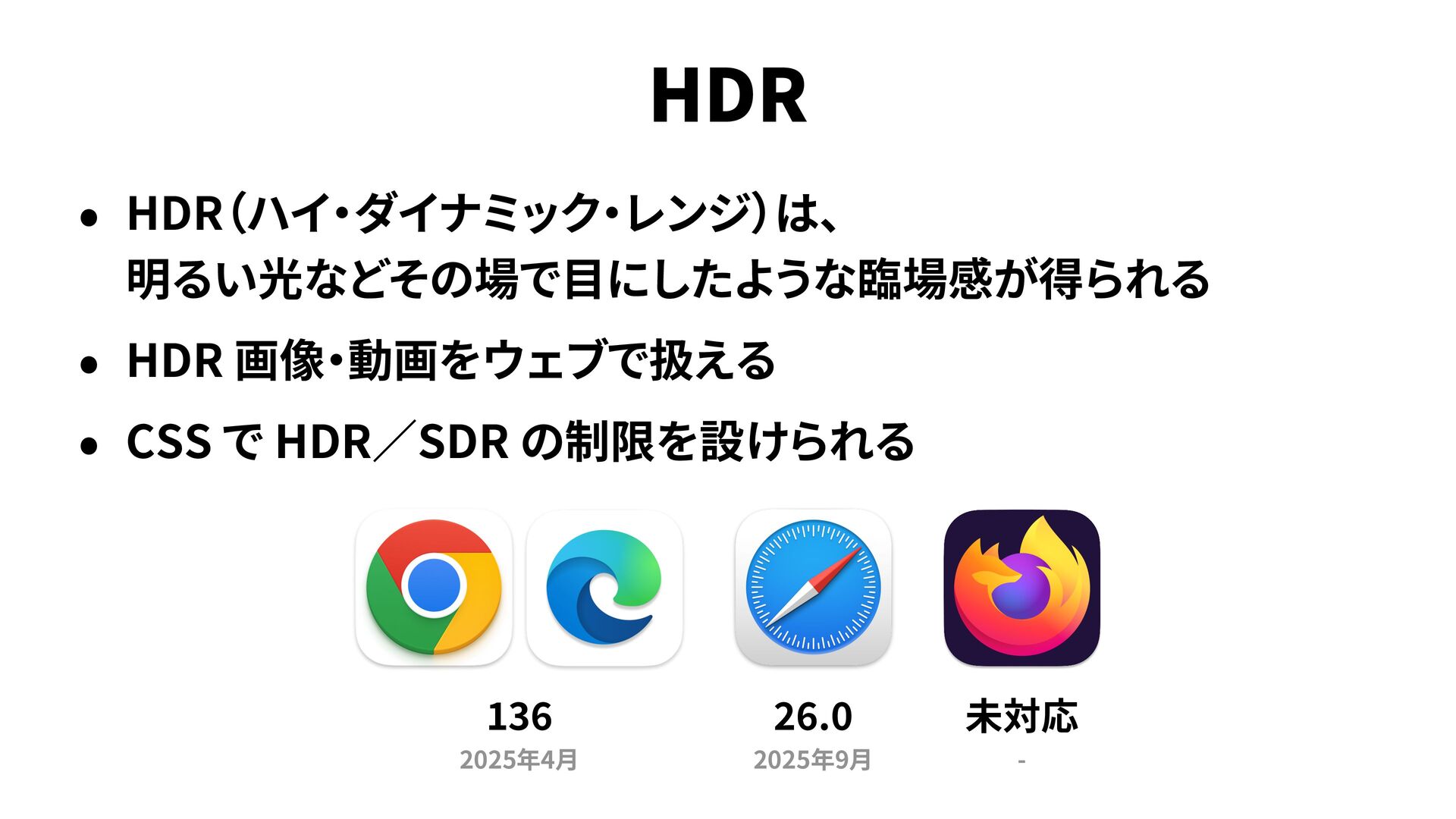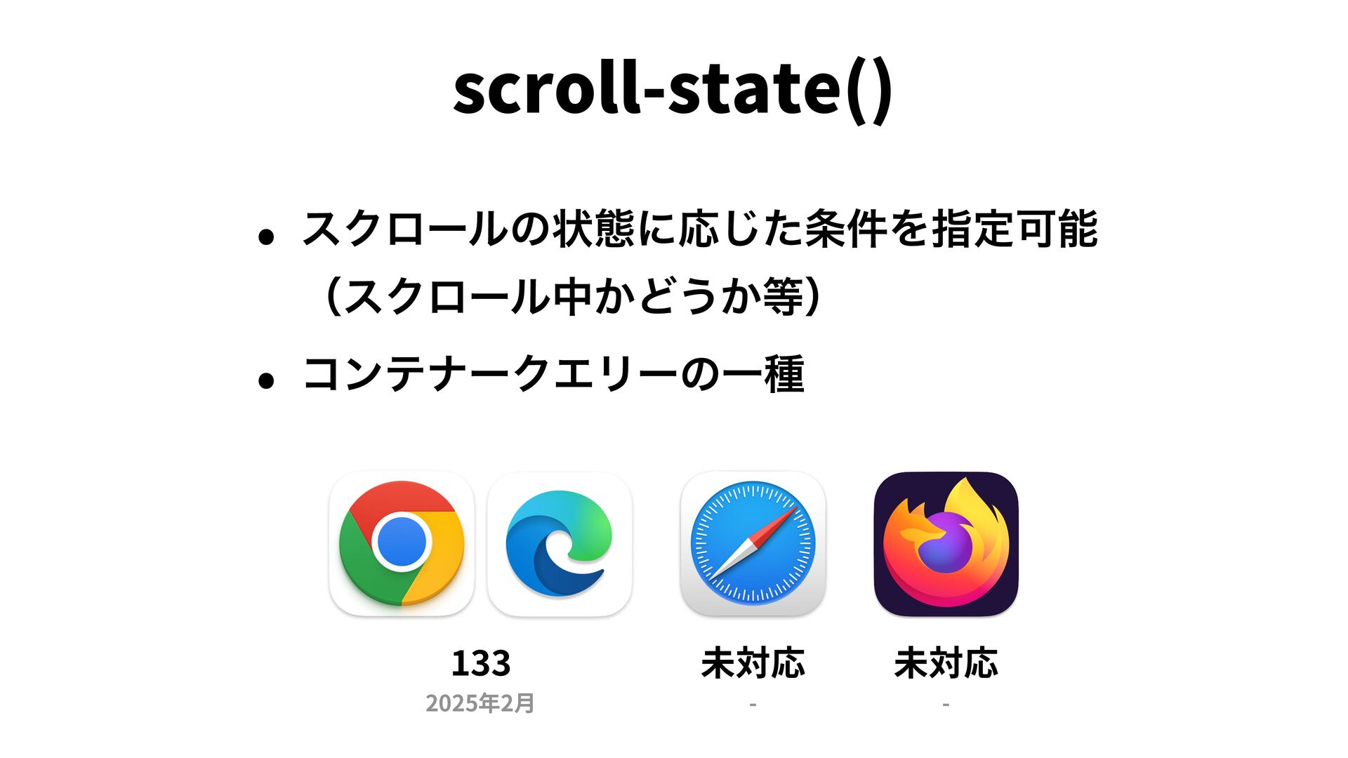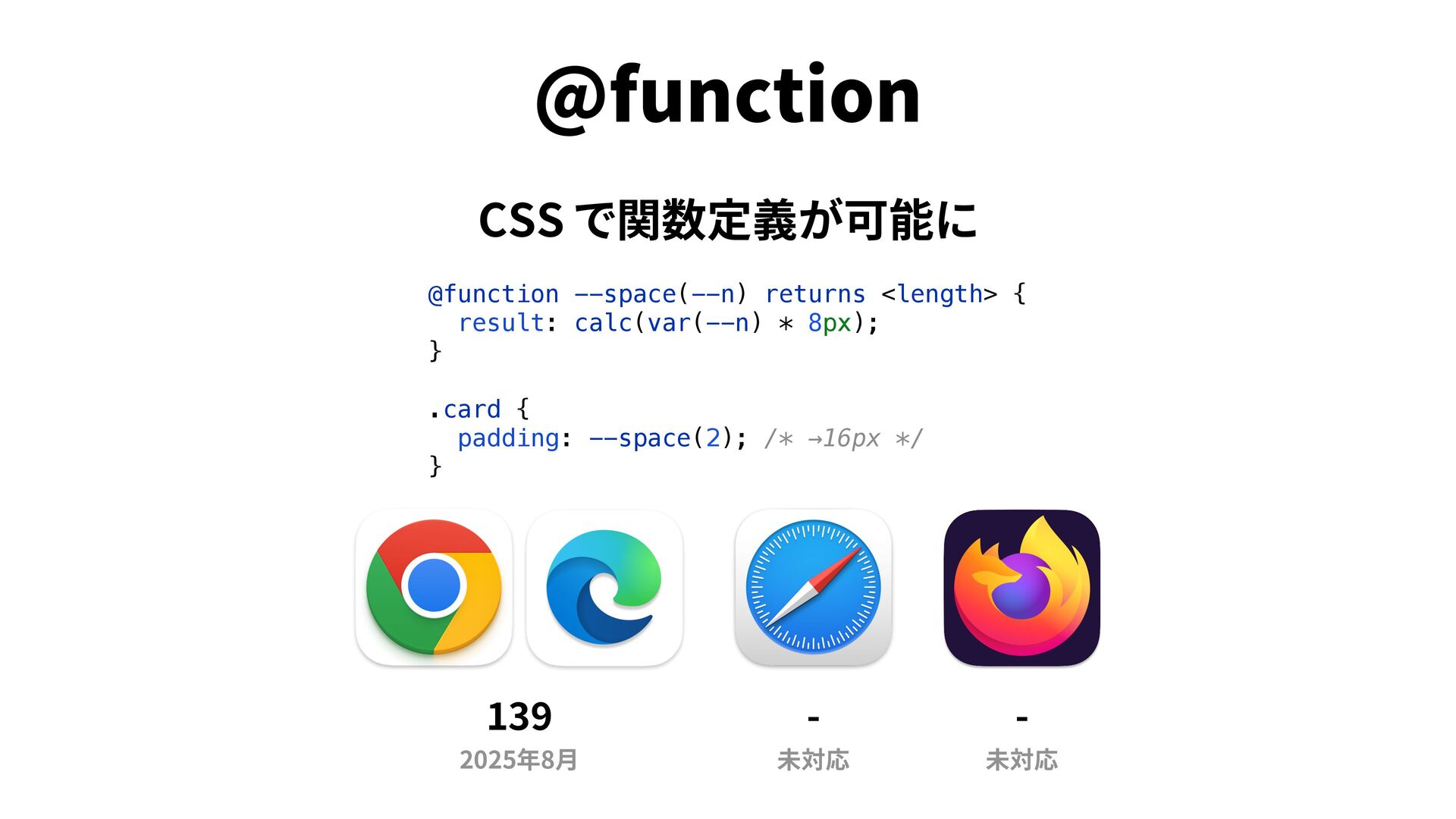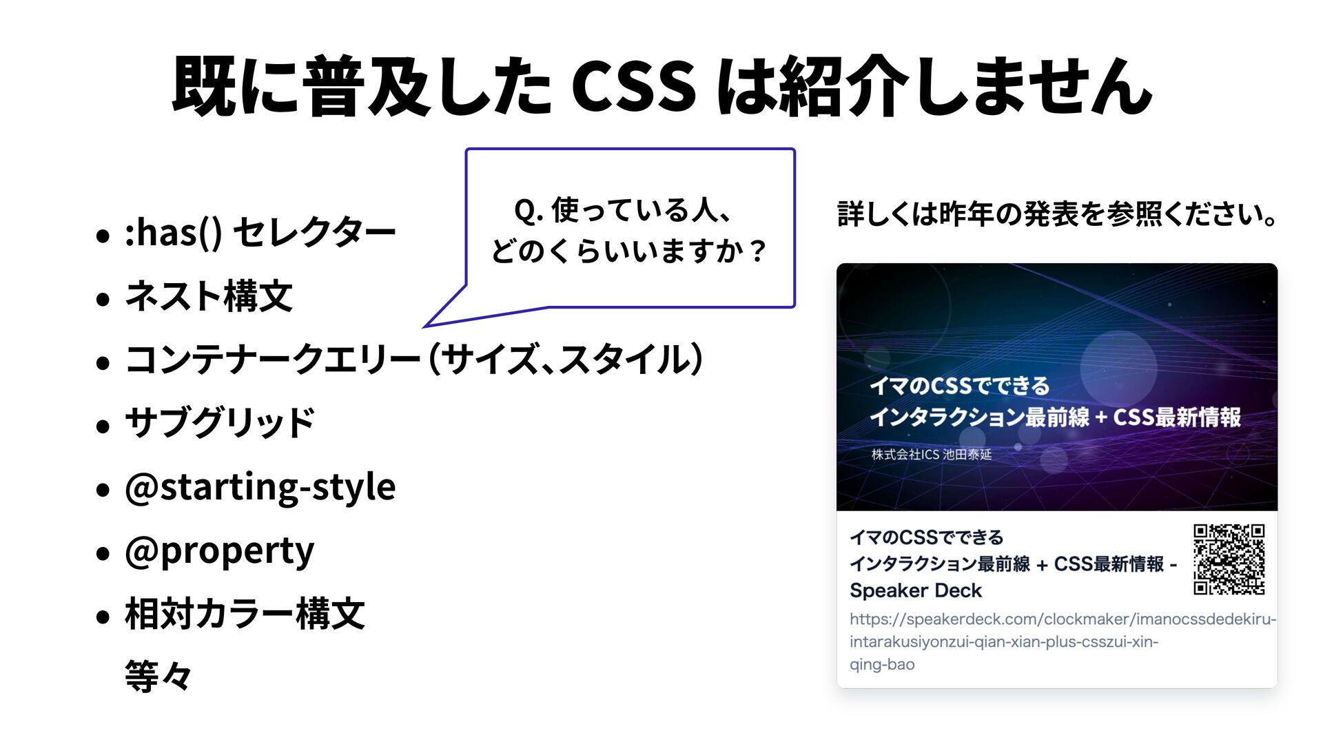 ここ数年、CSSの進化は目覚ましいものがあります。これまでChromeやEdgeが先行していた新機能も、2025年には主要ブラウザで広く実用化され、日常的なUIデザインにも活用できるようになりました。 本セッションでは、ウェブで頻出するUIデザインを題材に、最新のCSSでどのように表現し、どのような点に注意すべきかを実例を交えて紹介します。