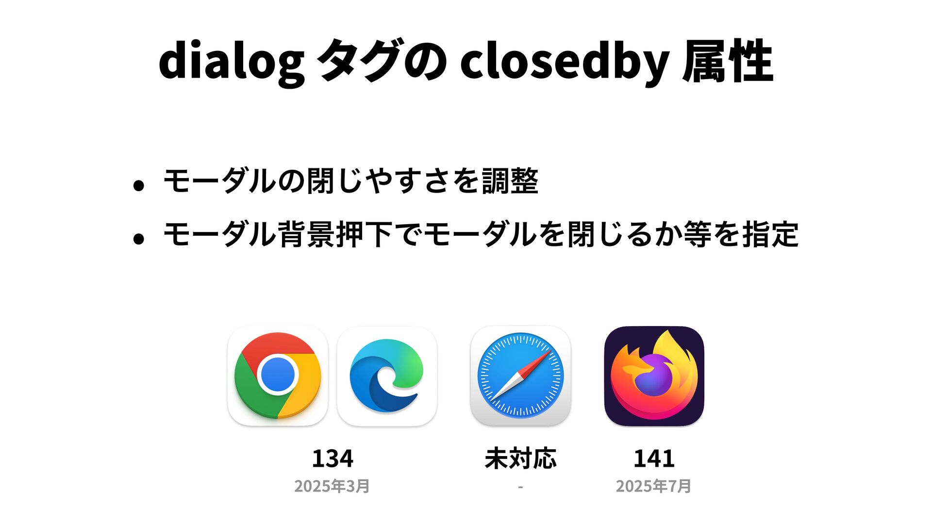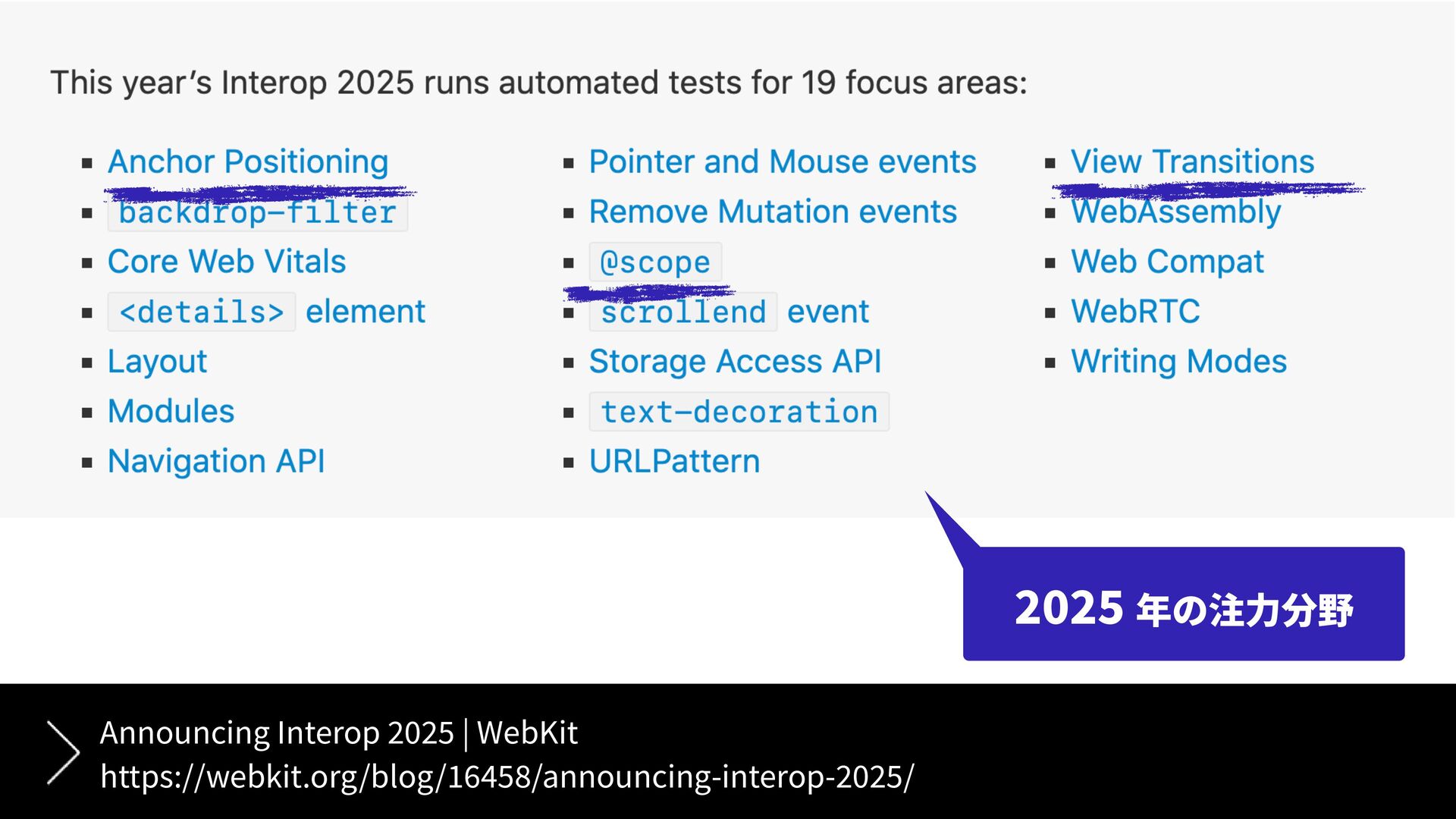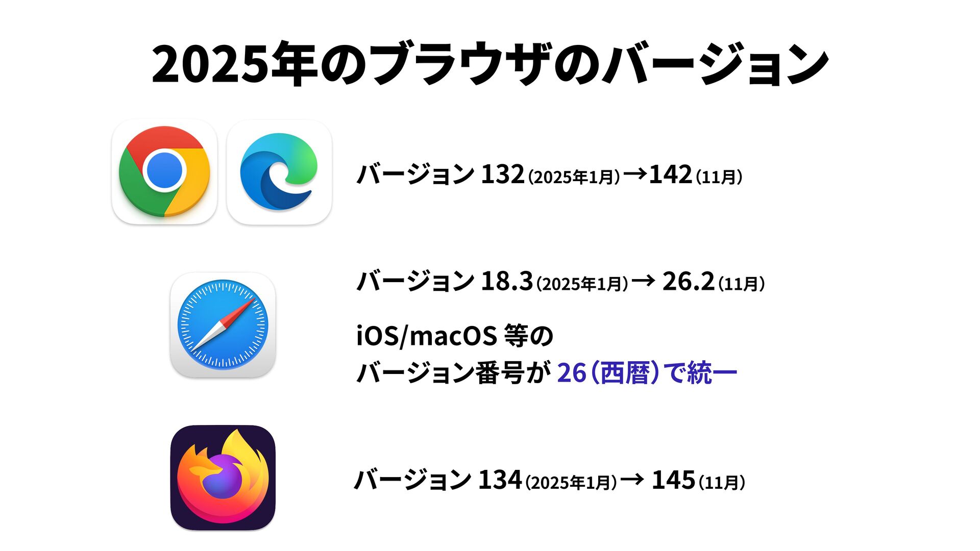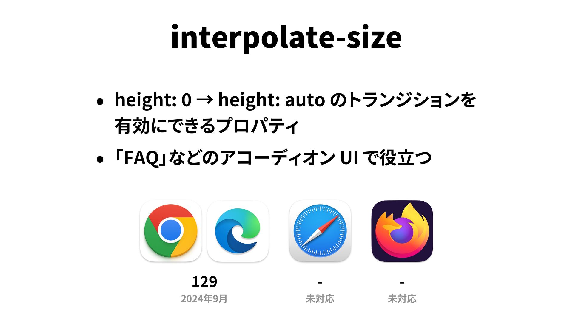 ここ数年、CSSの進化は目覚ましいものがあります。これまでChromeやEdgeが先行していた新機能も、2025年には主要ブラウザで広く実用化され、日常的なUIデザインにも活用できるようになりました。 本セッションでは、ウェブで頻出するUIデザインを題材に、最新のCSSでどのように表現し、どのような点に注意すべきかを実例を交えて紹介します。