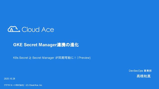 Secret Managerのシークレットを、Kubernetesの標準的な Secretオブジェクト に同期 • Secret Manager側の変更を自動でGKEクラスタ内の Secretに同期(ローテーション) Secret への同期が可能に これまでESOでしか実現できなかった 「K8s Secretへの同期」と「自動更新」 がGKEマネージド機能 として提供され ます アプリに依存せず利用可能 ファイルマウントだけでなく標準 Secret として作成可能に。アプリに依存なく 環 境変数として利用 できます 運用負荷の軽減 サードパーティ製オペレーターの イン ストールや管理が不要 になり、運用負 荷が大幅に軽減されます クラウドエース株式会社|(C) Cloud Ace, Inc. 5