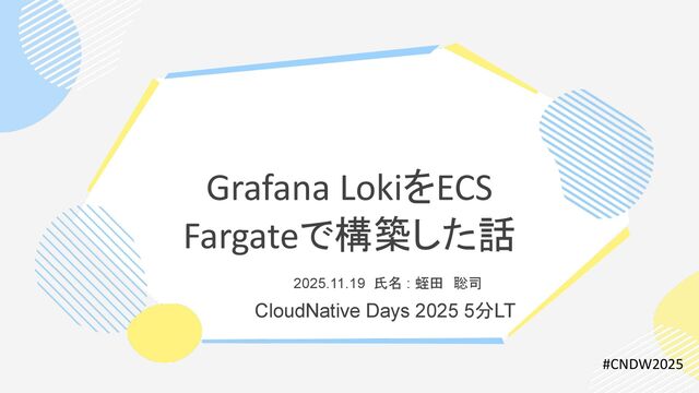 Grafana LokiをECS Fargateで構築した話 2025.11.19 氏名 : 蛭田 聡司 CloudNative Days 2025