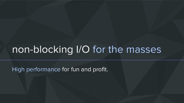I/O is everywhere. I/O is slow. There's no denying it. Using traditional blocking I/O calls can thus be seen as a huge contributor to slow applications. This talk discusses how non-blocking I/O can help in building high performance, event-driven, reactive, concurrent, single-threaded applications (bingo). Don't worry, no need to install Node.js and npm install half the internet. Let's build high-performance applications from scratch with whatever language you're most comfortable with!