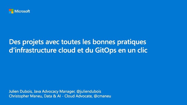 Julien est développeur Java et travaille avec de grandes entreprises, Christopher est développeur .NET et travaille avec les Startups. Mais le problème de ces équipes est le même: comment se lancer dans l'infrastructure as code, en respectant les bonnes pratiques pour un déploiement cloud, tout en implémentant GitOps ?