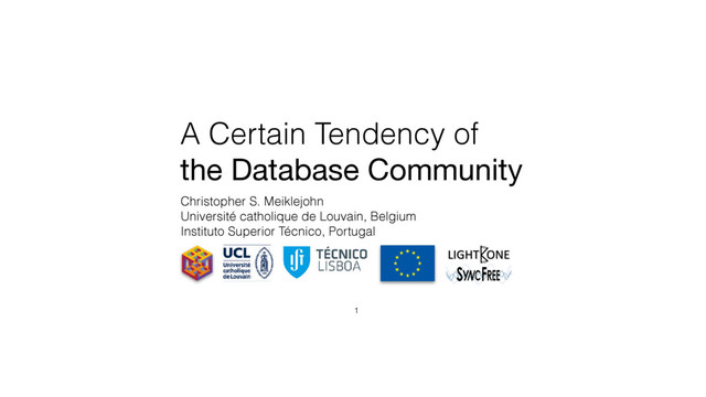 Mergeable data structures form the core data abstraction for a programming model • Programming through composition of mergeable data structures Ensure the mergeability property holds through program transformations, data composition • One example: Lasp Lattice Processing (Meiklejohn, Van Roy 2015) • Correct-by-construction Correct-by-construction distributed programs for infrastructure that provides weak guarantees 22