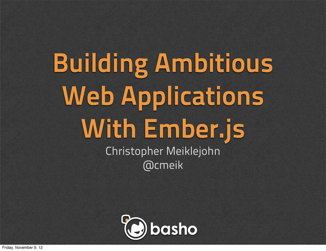 An Introduction To Ember.js Christopher Meiklejohn @cmeik Friday, November 9,