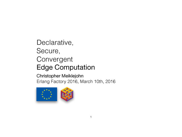 ACM SIGPLAN PPDP 2015 • “Selective Hearing: An Approach to Distributed, Eventually Consistent Edge Computation” IEEE W-PSDS 2015 • “The Implementation and Use of a Generic Dataflow Behaviour in Erlang” ACM SIGPLAN Erlang Workshop ’15 • “Lasp: A Language for Distributed, Eventually Consistent Computations with CRDTs" PaPoC 2015 • “Declarative, Sliding Window Aggregations for Computations at the Edge" IEEE EdgeCom 2016 163