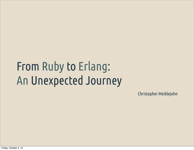 with analysis... test.erl:13: Function check/0 has no local return test.erl:14: The call test:is_ok('ok') will never return since it differs in the 1st argument from the success typing arguments: ({'error',_} | {'ok',_}) done in 0m0.60s -module(test). -compile([export_all]). is_ok(Symbol) -> case Symbol of {ok, _} -> true; {error, _} -> false end. check() -> is_ok(ok). Friday, October 4, 13