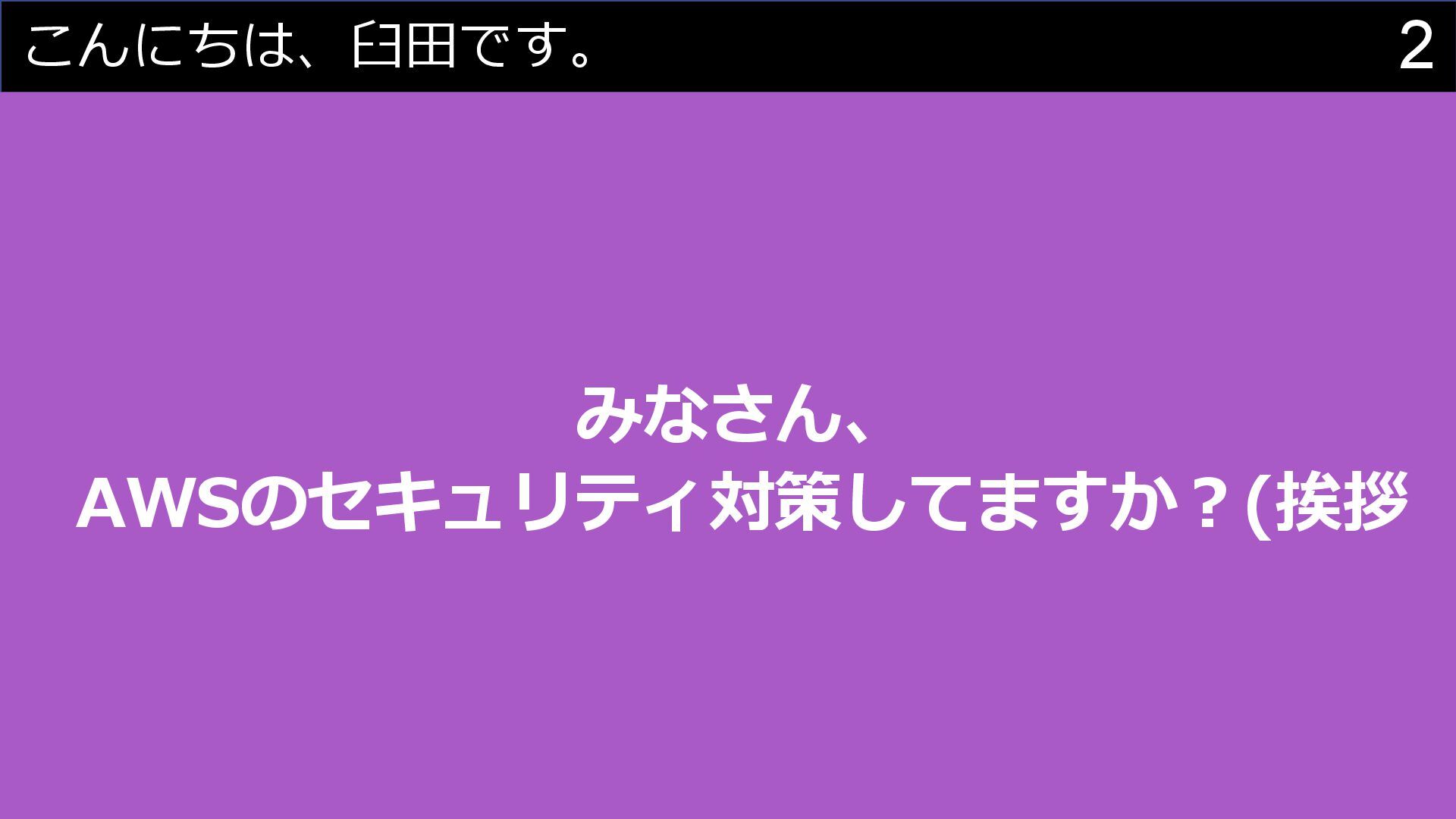 2 こんにちは、臼田です。 みなさん、 AWSのセキュリティ対策してますか?(挨拶