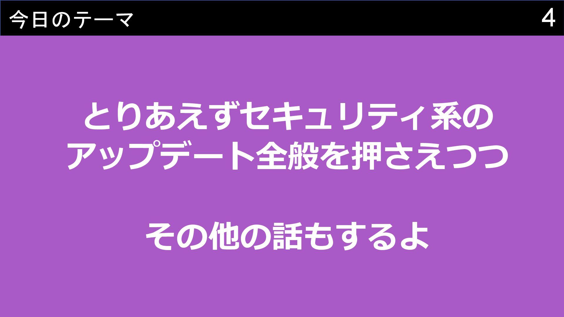 4 今日のテーマ とりあえずセキュリティ系の アップデート全般を押さえつつ その他の話もするよ