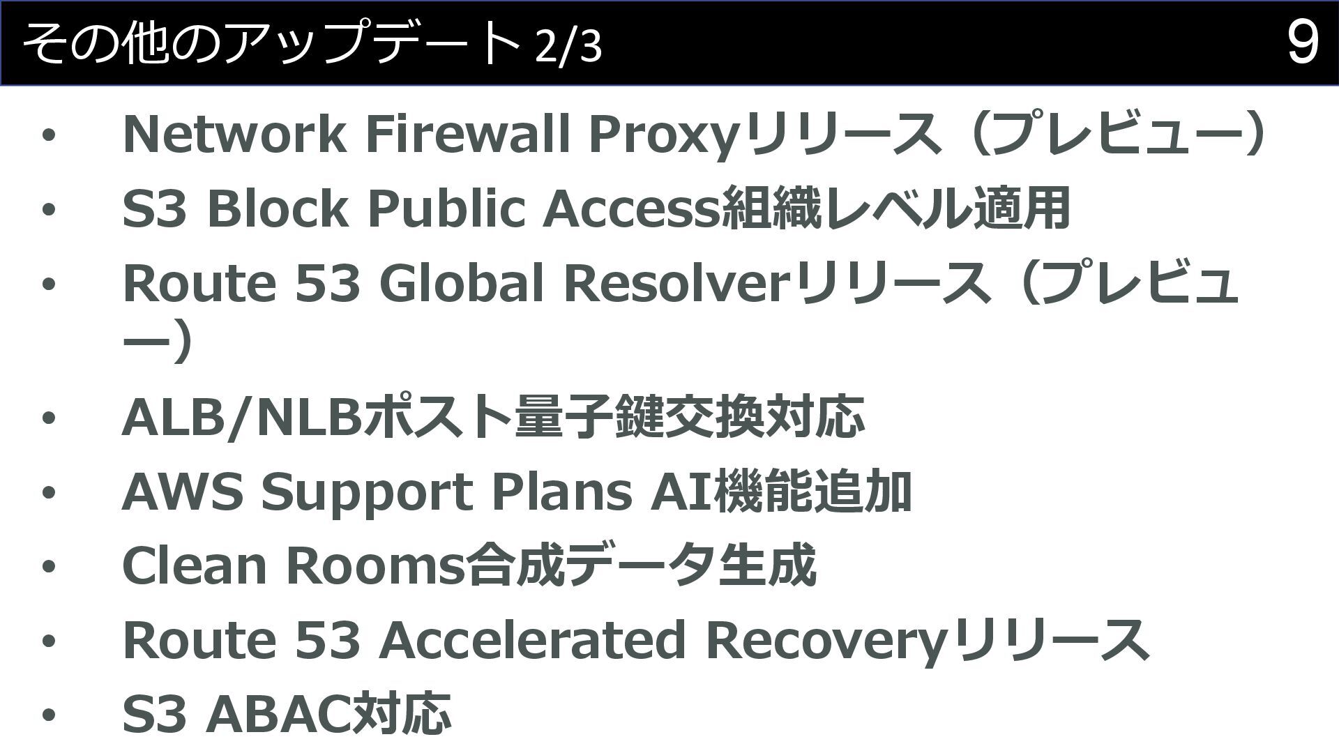 9 その他のアップデート 2/3 • Network Firewall Proxyリリース(プレビュー) • S3 Block