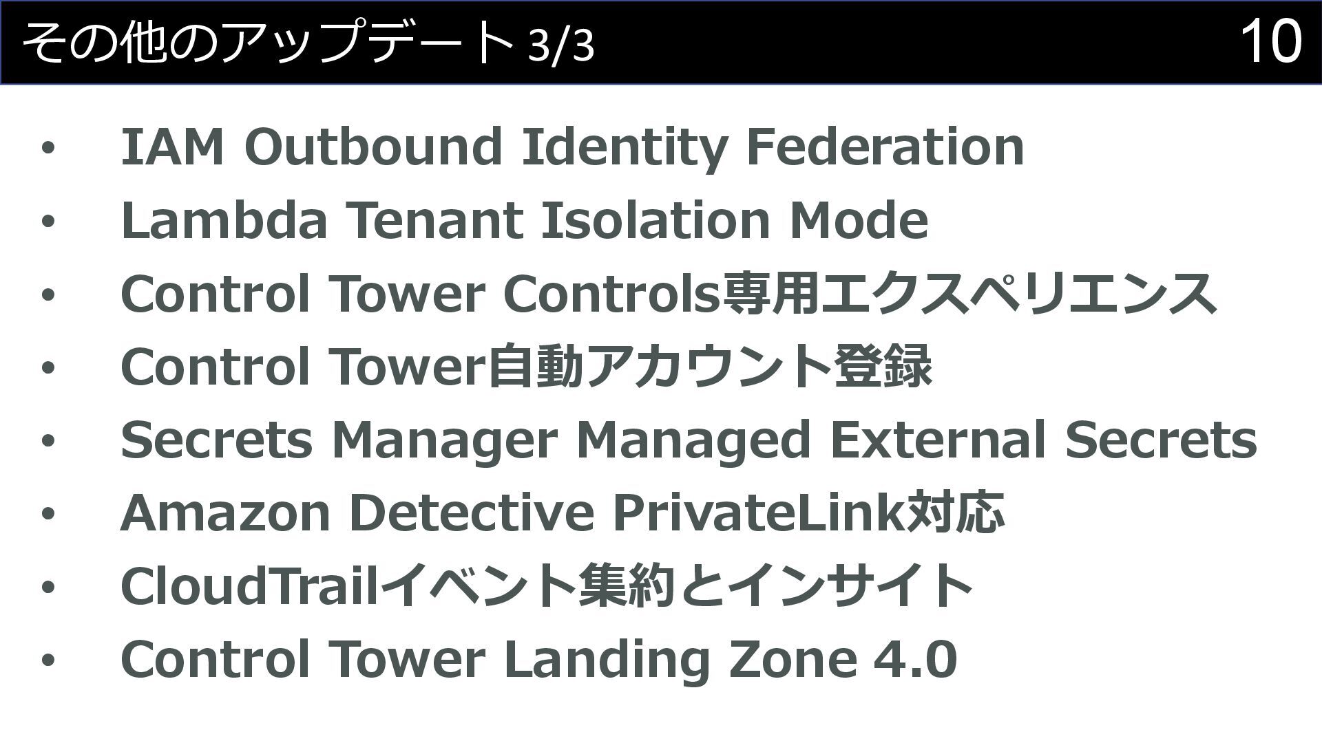 10 その他のアップデート 3/3 • IAM Outbound Identity Federation • Lambda